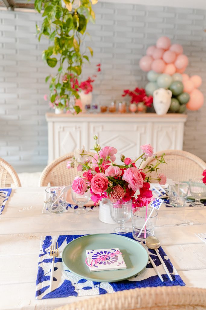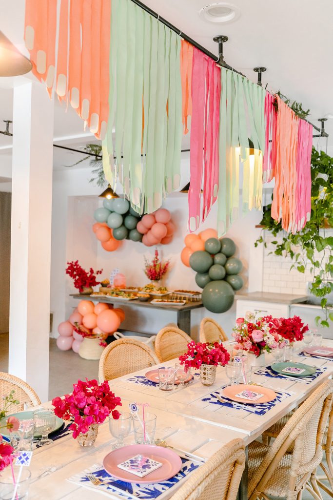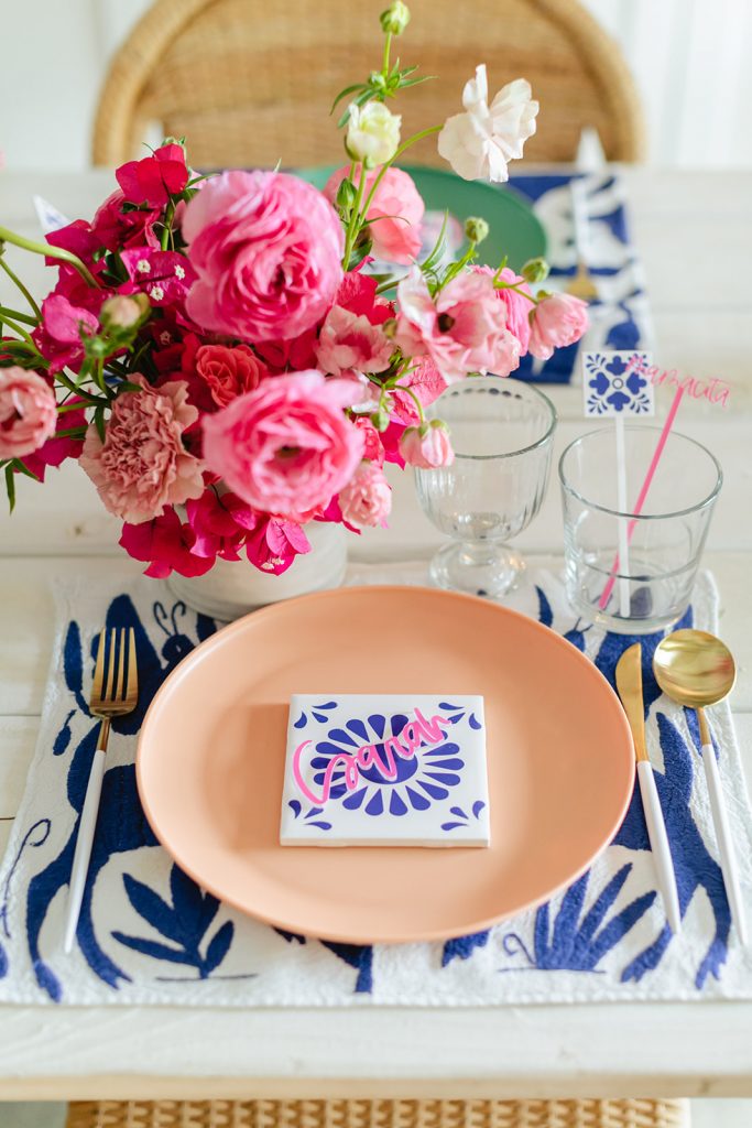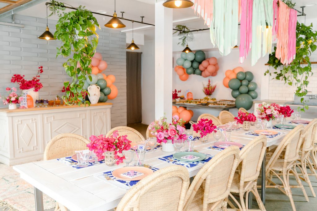 I’m obsessed with those Otomi napkins that I used as placemats from Hostess Haven, along with all of our guests!! The plates are from Target and I have been using them so much for events and shoots lately, the price is right and the colors are so fun!