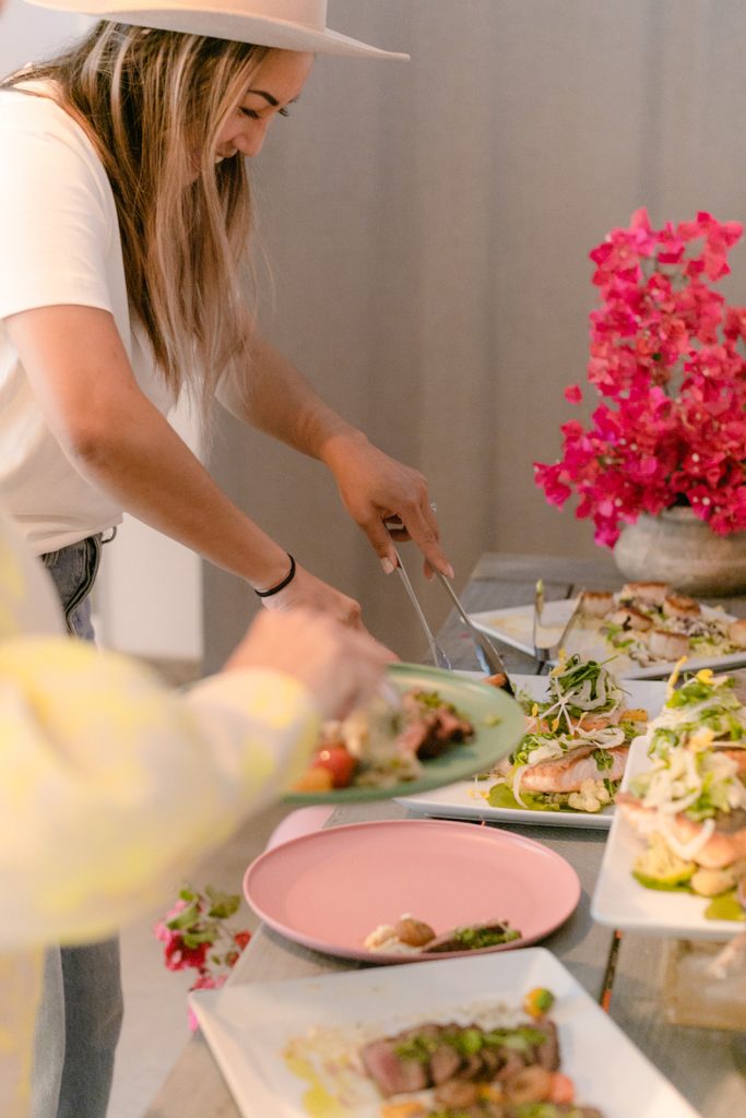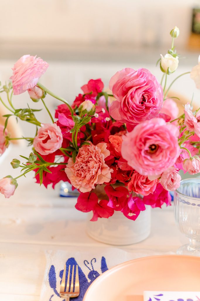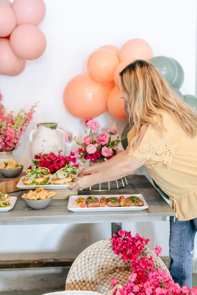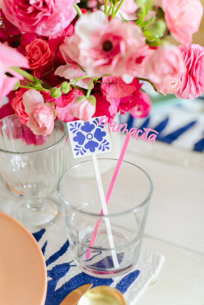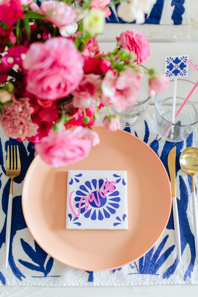 I’m obsessed with those Otomi napkins that I used as placemats from Hostess Haven, along with all of our guests!! The plates are from Target and I have been using them so much for events and shoots lately, the price is right and the colors are so fun!