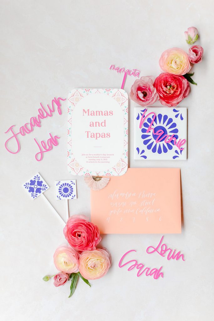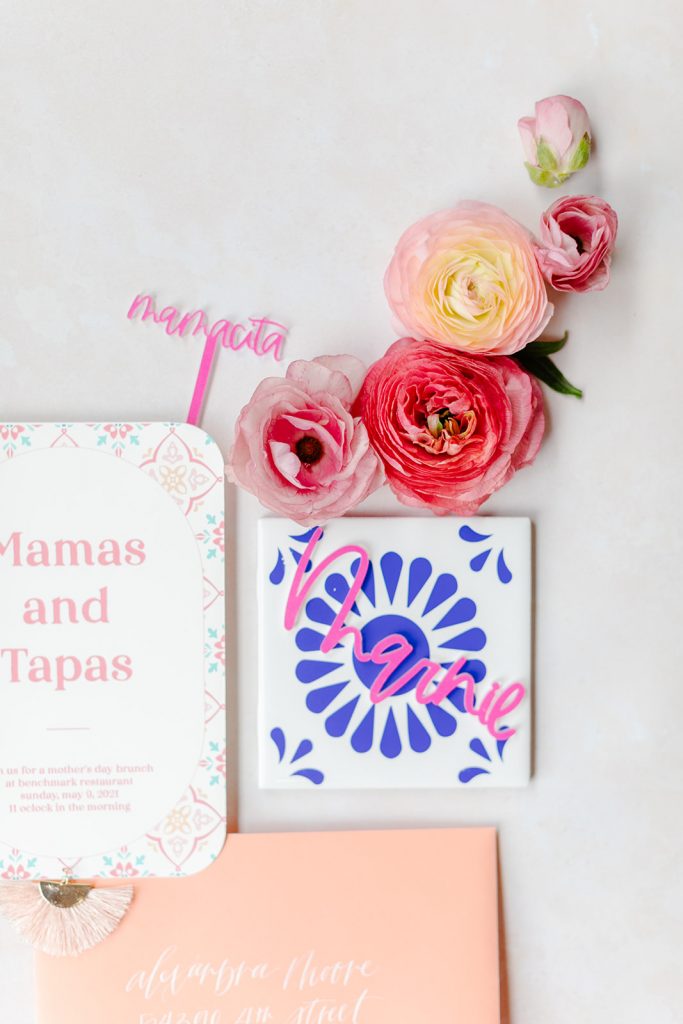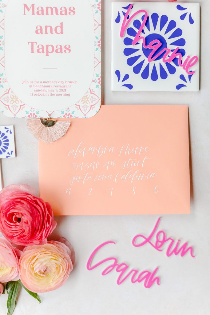 A pretty little invite was in order by Double Dipped Calligraphy. I’m sort of obsessed with the little tag she added at the bottom, I mean, how cute?! Creative Amme added the most amazing Mexican-inspired details with all the pink (of course!!), and Lorin styled it perfectly on my Stile and Co mat.