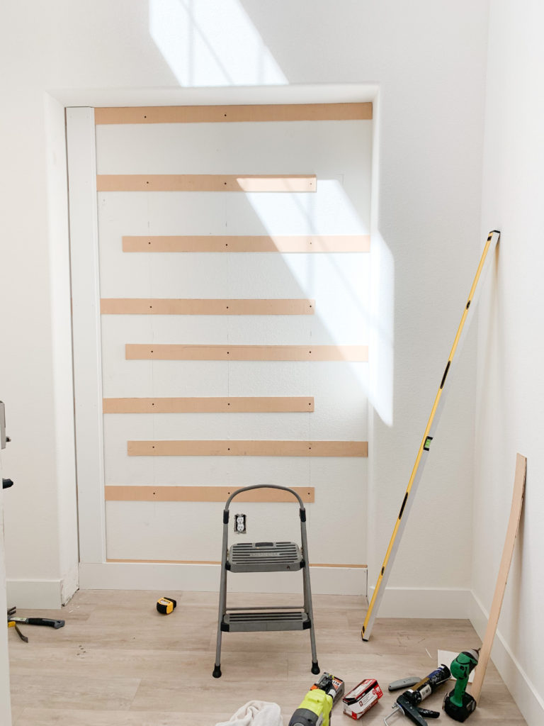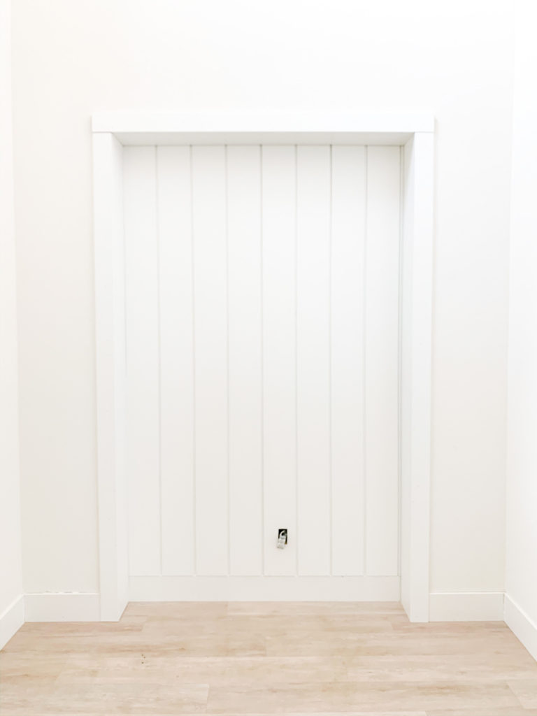 Projects are happening again over at the Guido house, and I’m so excited! I have a laundry list of projects that I have for my husband just like I’m sure all of you have. I have the designs down, the exact way I want them all styled. The only issue? Pulling him off the golf course on the weekends to do all those projects! Who else is with me, ladies!?! But, but in all seriousness, he is so handy and is such a trooper to put up with all my demands, and most of those are last-minute changes. He loves that ALOT! Ha! So when I see those “project” shorts on, I get so excited! He has a project uniform, haha! You will see in the photos later. Our entryway was pretty boring, and I wanted to bring some of the vertical shiplap we have in other parts of our home into there. If you are looking for something just like this, you are in luck! Today, he is sharing with you step by step, and I’m showing you how I styled it up!