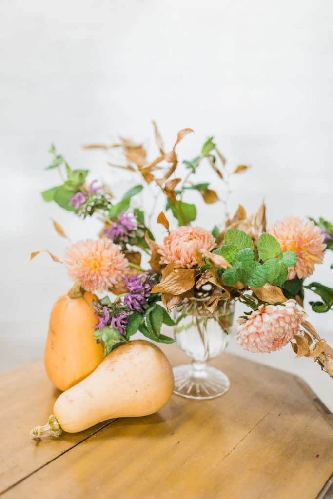 Third & Park is responsible for all the stunning Fall floral arrangements you see. She used all kinds of textures including Fall foliage in the perfect neutral tones. Mixed with the greenery and the blush and lavender flowers, it just looks so pretty! Oh, and all the pumpkins and butternut squash? Those are from Marnie’s mom’s garden!