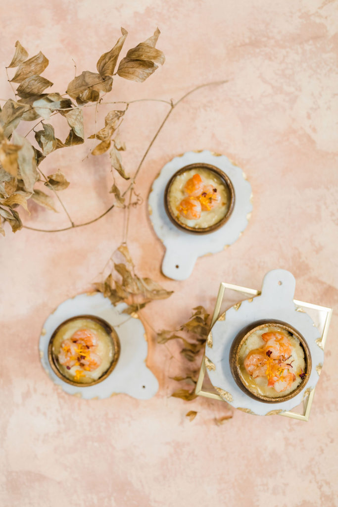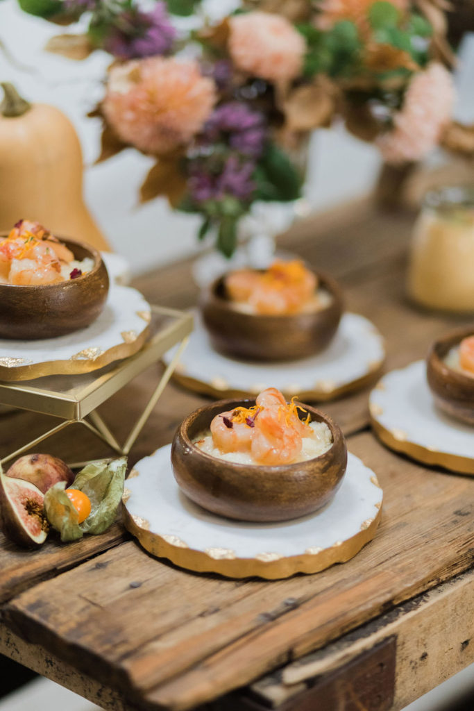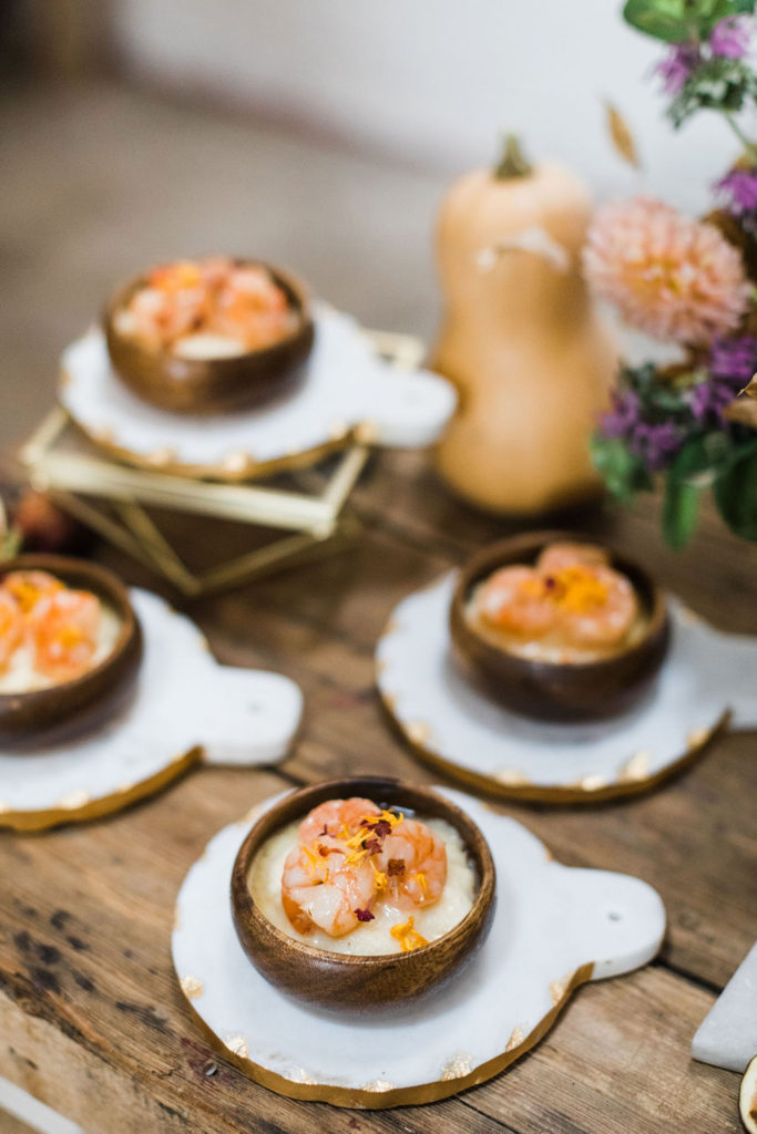 On the menu was butternut squash soup with mini grilled cheese and butter-poached shrimp with white cheddar grits. Don’t you love how it’s all served as well? Everything micro and separated, keeping the social distancing safe of course! That is definitely a trend we’ve been seeing and liking since COVID.