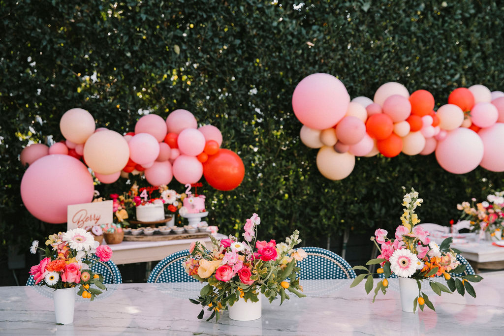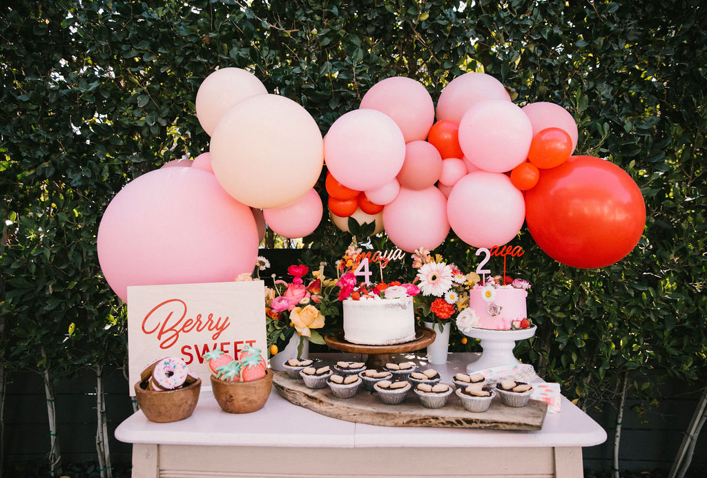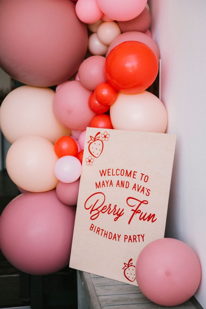 Strawberries are a staple in my house all year long, but in the summer they are the best!!! We did this party a few months ago but it’s still as sweet as ever! One of our favorite families to party with asked us to do this adorable party for their two girls. A joint birthday party with their favorite fruit and all things pink!!! As a matter of fact, it was one of our first parties back after Covid, thank god!!!