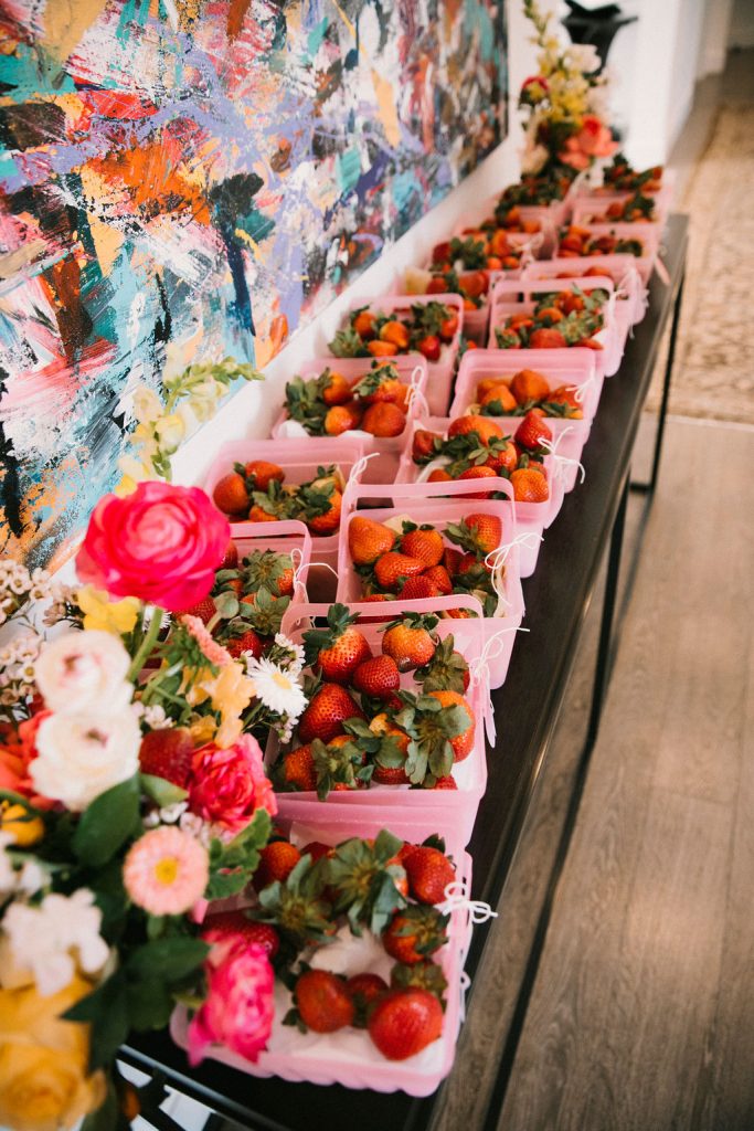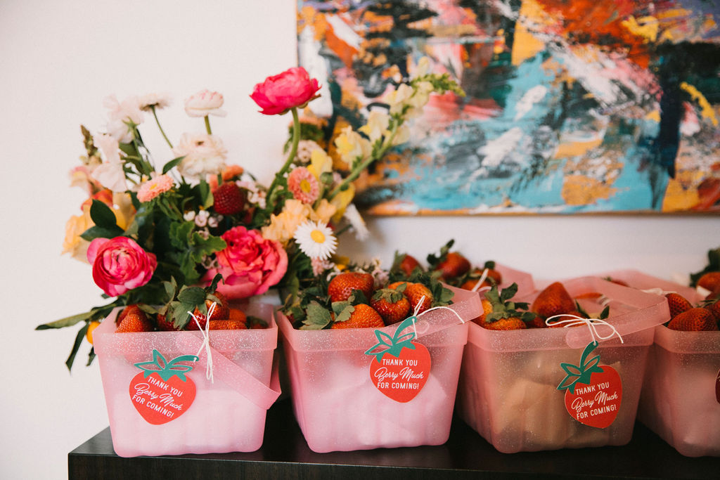 For a favor we did fresh strawberries! The perfect way to send guests home – with a sweet treat to remind them of the party!!