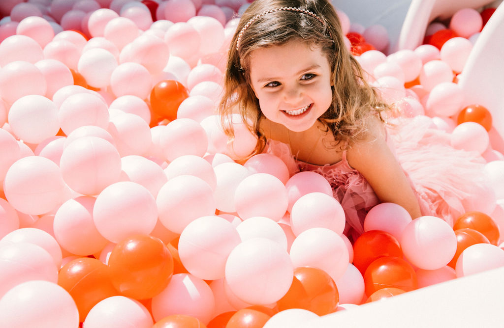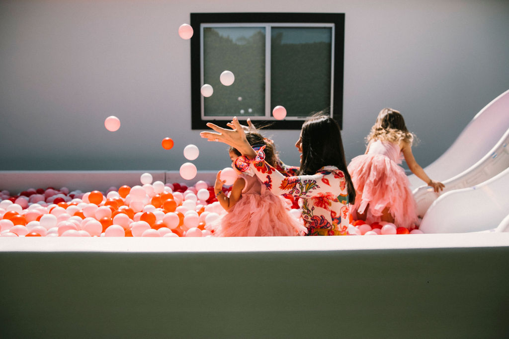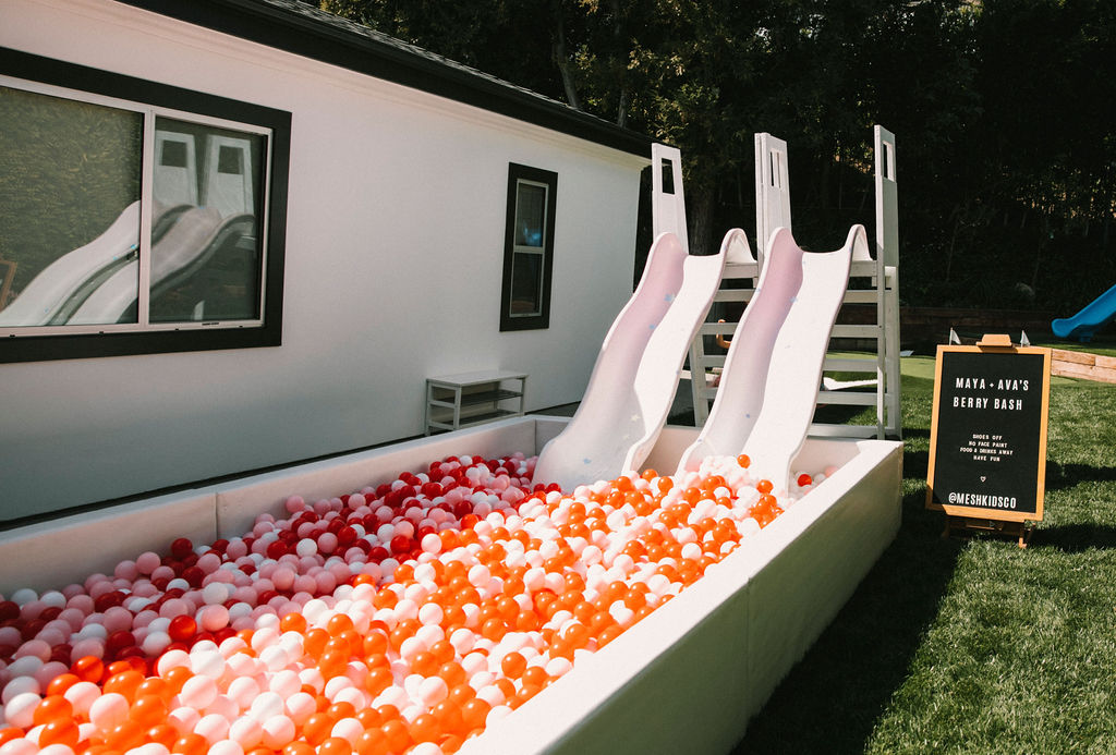We had tons of fun things to keep the kids busy at this big bash! Let’s start with our friends at Mesh Kids! Their ball pits are always a hit – something our clients can be hesitant on but when they see it they believe it because it’s true!!! Look at how much fun these kids had?! And they even customize the balls to the party’s colors and did the adorable sign on the ball pit!