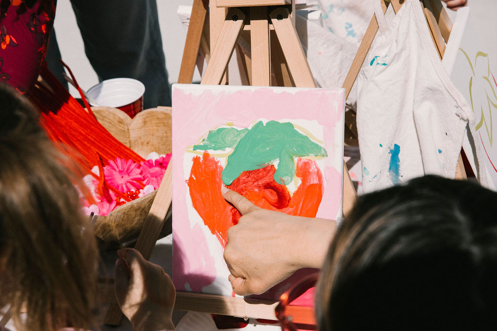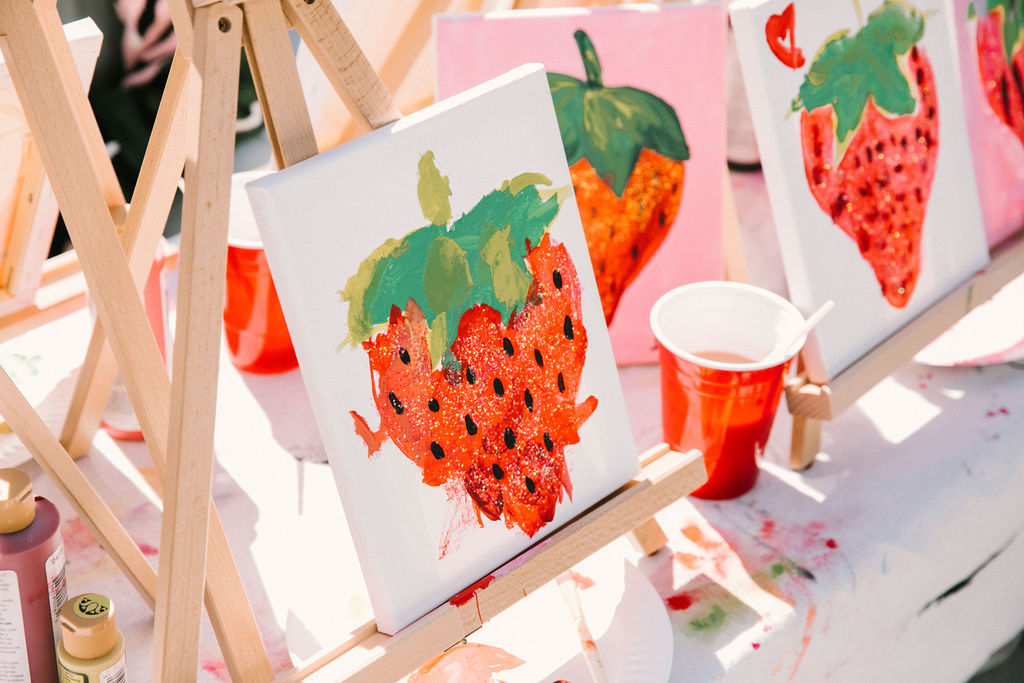 How about some art?! We had our friends at Camp Lila come and lead the guests in a strawberry painting! Such a great way to keep the kids busy and happy – plus, everyone gets to bring home their beautiful work and hang it up in their home!