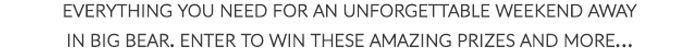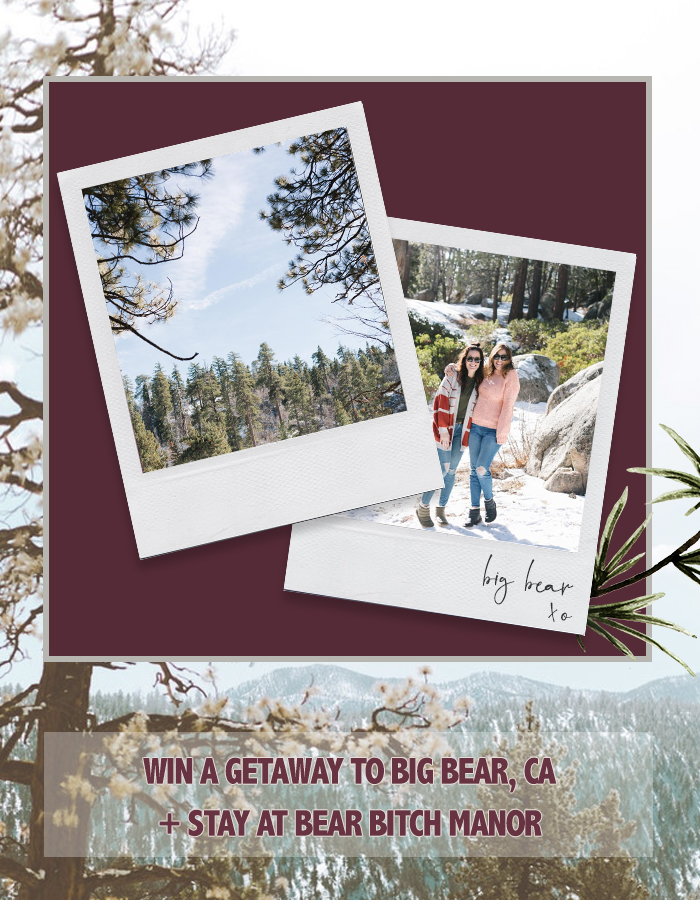 Yesterday we shared all about your trip to Big Bear and stay at Bear Bitch Manor… Well today is your chance to win it all, and a bunch of amazing goodies to make your trip even more amazing!!!  Scroll down to enter!!!