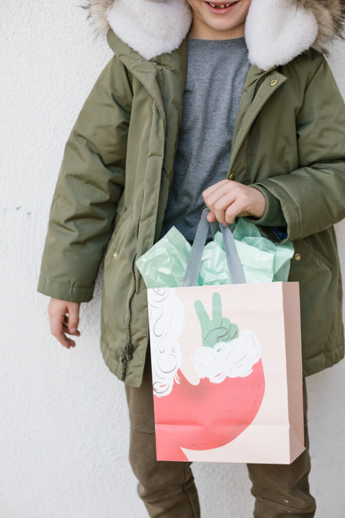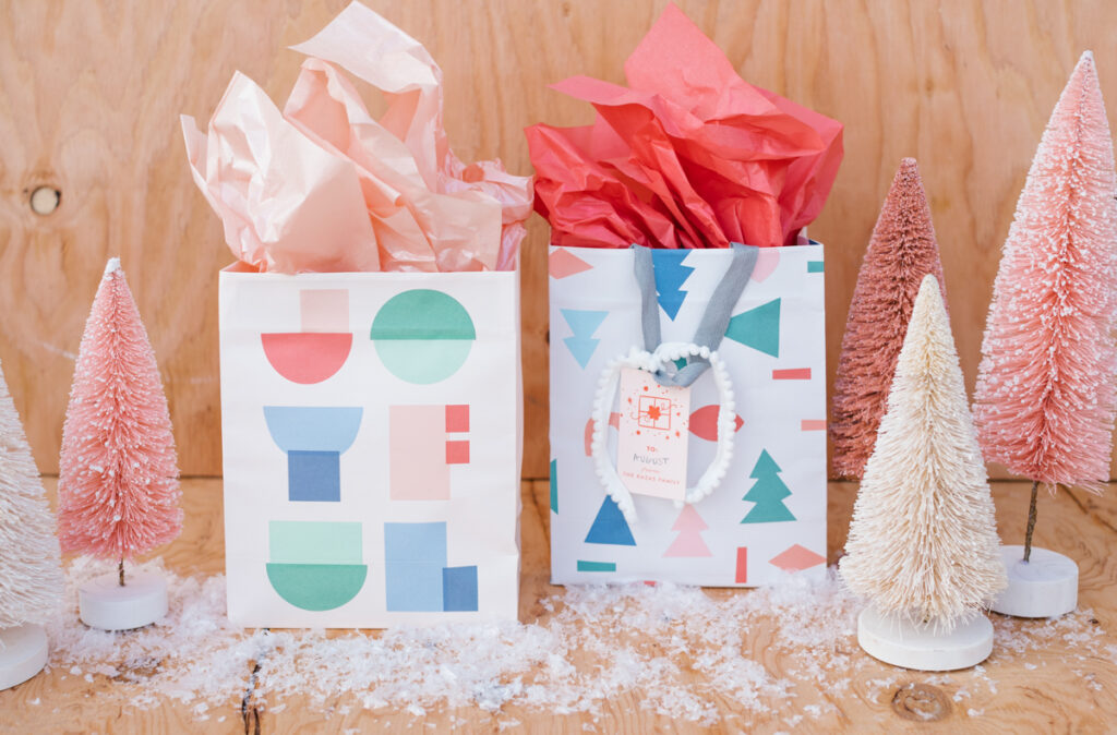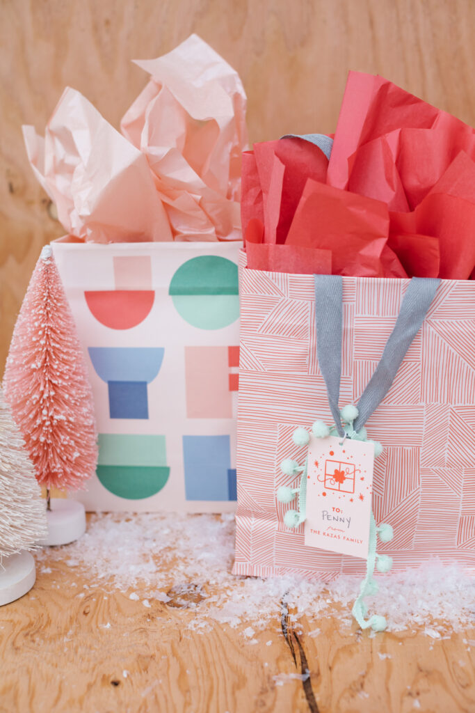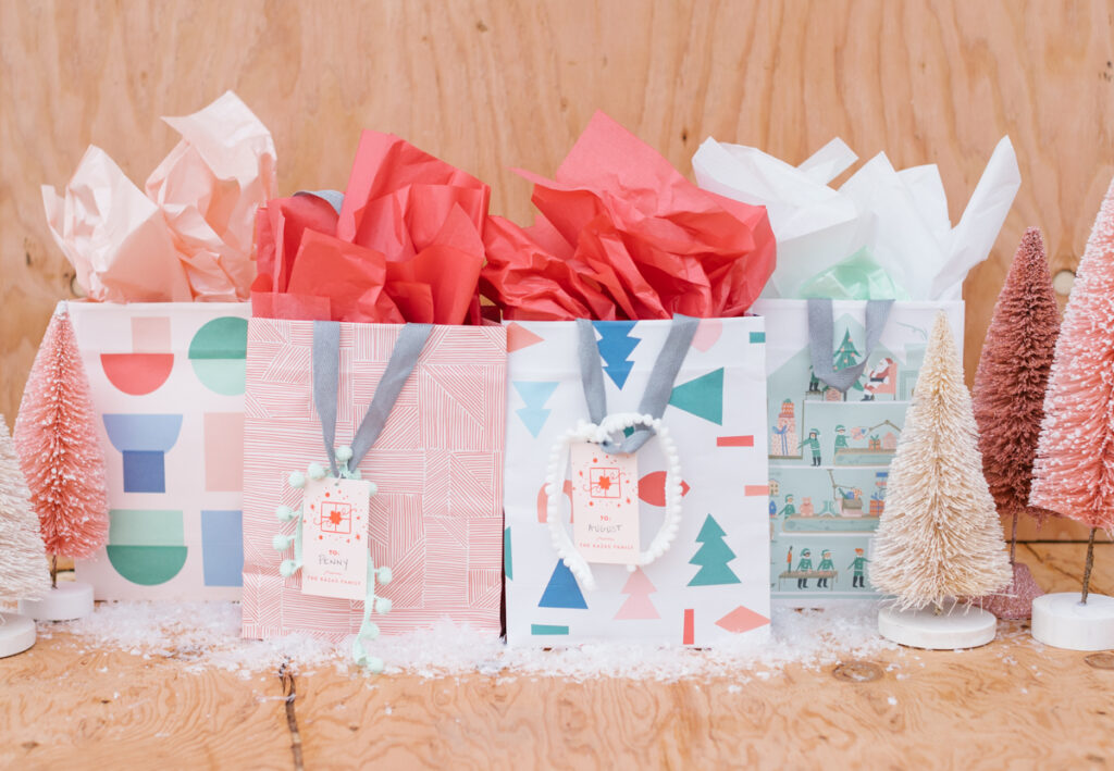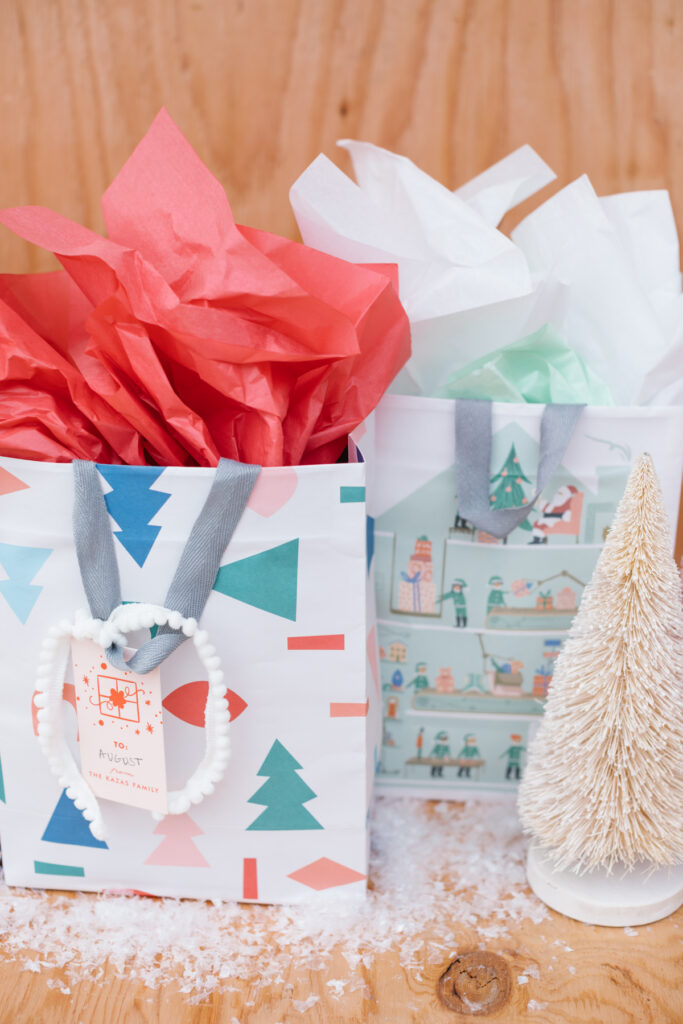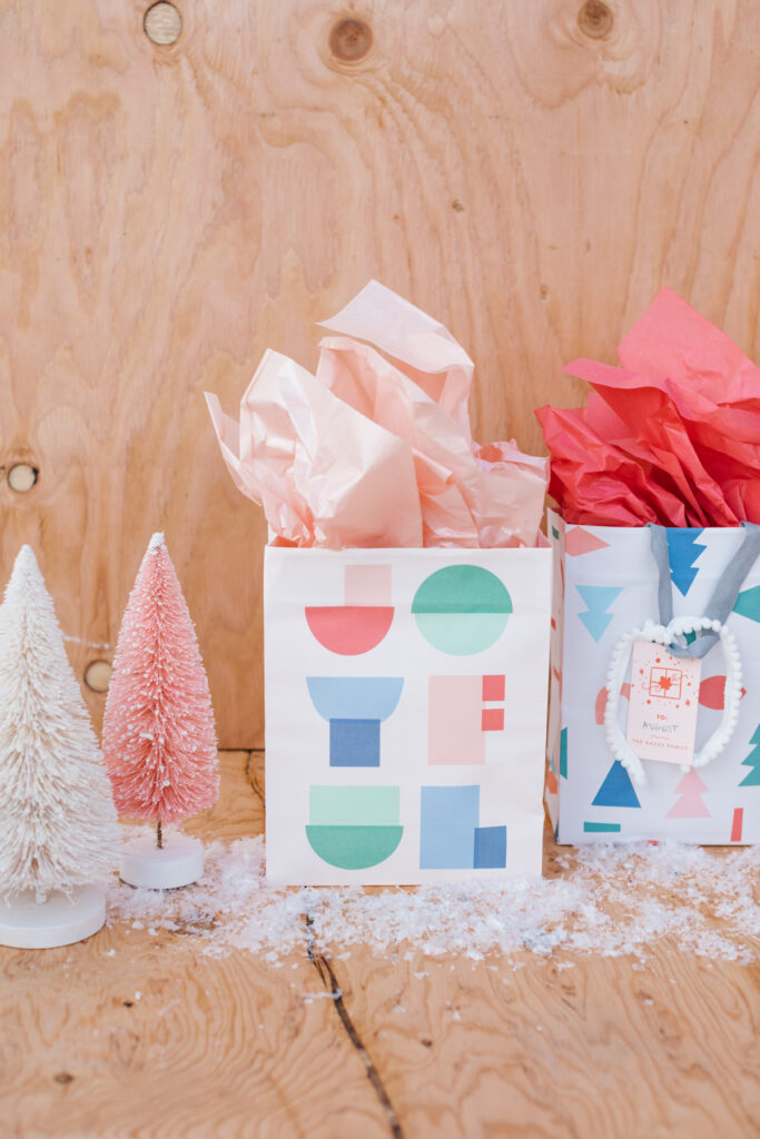 I browsed all of their sets of bags and loved how modern and playful all of the prints are. All of the graphics they use are so fun, and it’s not often to find cute bags, haha! I also got their custom gift tags, you can put your family’s name, and easy peasy, you’re set!
