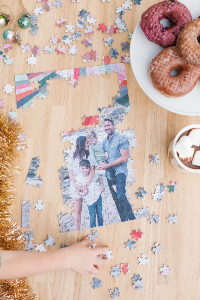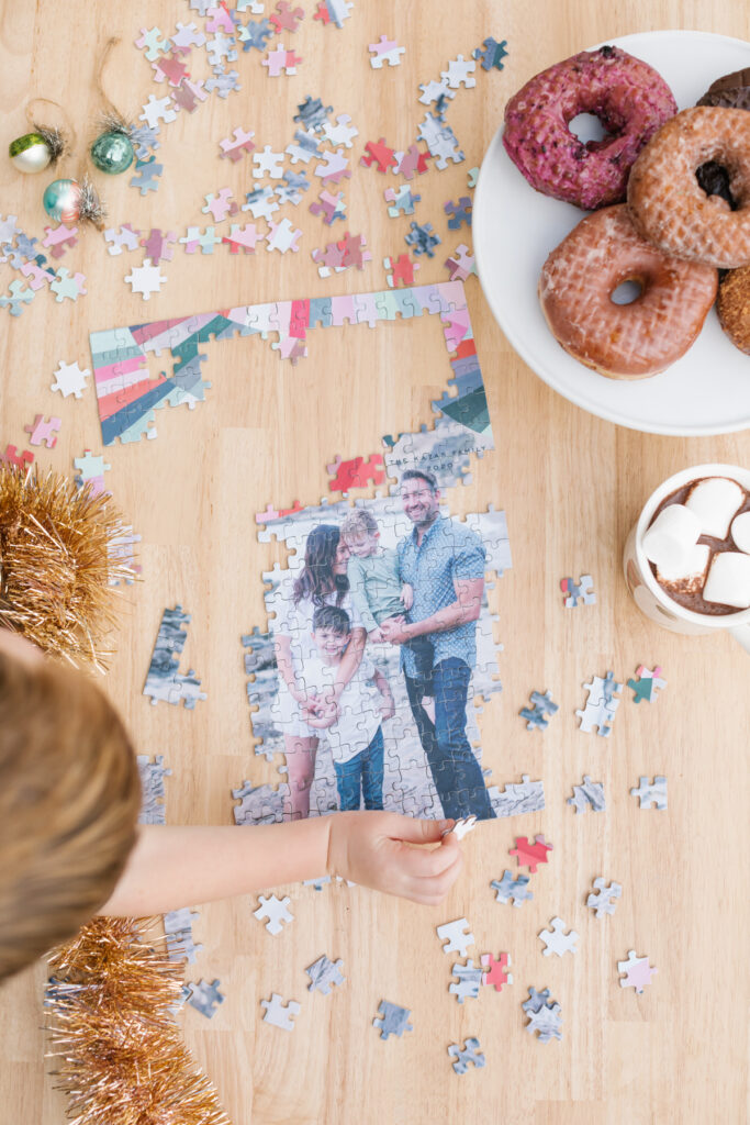A fun addition to Minted’s array of goodies were these custom puzzles! I ordered one for my family using our Christmas card photo. When we received it in the mail my boys were SO excited to see their own faces on a puzzle! We took one morning to do the puzzle over donuts and hot cocoa, it was so special! I love making memories like that!