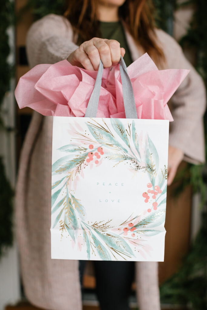 Last but not least from Minted were the cutest little gift bags! I have to say, I do appreciate a well-wrapped gift and love doing them, but let’s be honest, bags are just easy!! And I don’t know about you but this mama is tired and if there’s one word I’m looking for in 2020, it’s EASY! Easy and cute, well then you have my attention!!