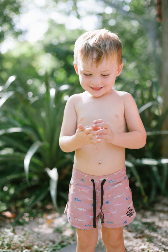 Look at these little buddies in their cute swim suits!!! Cruz and Olivia are in the fun shark print and I love Penny’s stardust print. I’ve seen some of their designs for next year and they are SO good you guys!! I can’t wait!!