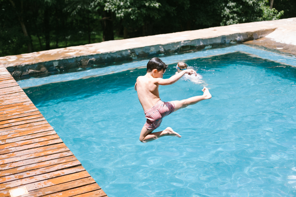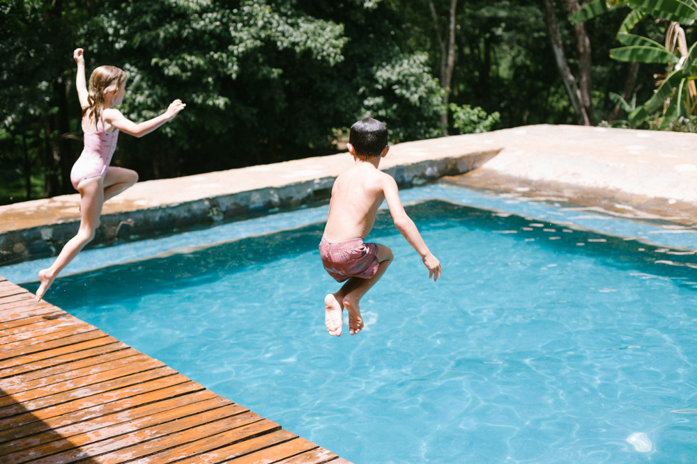 Each day we were there the husbands would surf in the morning. Must be nice, right?! Us mamas would hang with the kids at our house and go swimming in the pool – side note, a pool is a MUST because it’s hot! One of my favorite days was the one below. We had so much fun playing games and doing wild jumps and dances into the pool. The music was blasting and the kids were having the best time, it was such a special day!