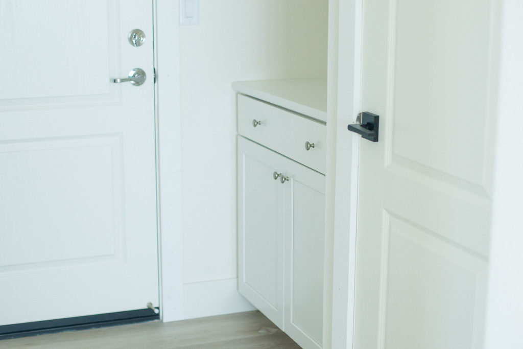 Our walls and cabinets throughout out our house are all white. So you can imagine, the house needed some color. The tones of the house are turning out to be white, blacks, and natural colors mixed in with them. I wanted a statement piece when you walked in, and black ship lap and cabinets were the answer. I used the color, Nightfall by Benjamin Moore, and I’m so in love it. It’s not black, but a very deep dark gray. We are using Nightfall for our kitchen island too as we speak. Excited to see how that turns out! I’m telling you that honey to do list is long!