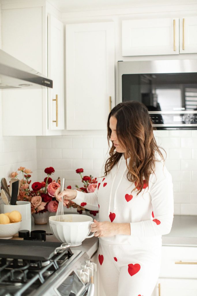 My cute little heart sweatsuit is from Chaser!  It’s super soft and I’ve been wearing it to get cozy and festive with my family!!  You can get the sweatshirt here and the pants here!