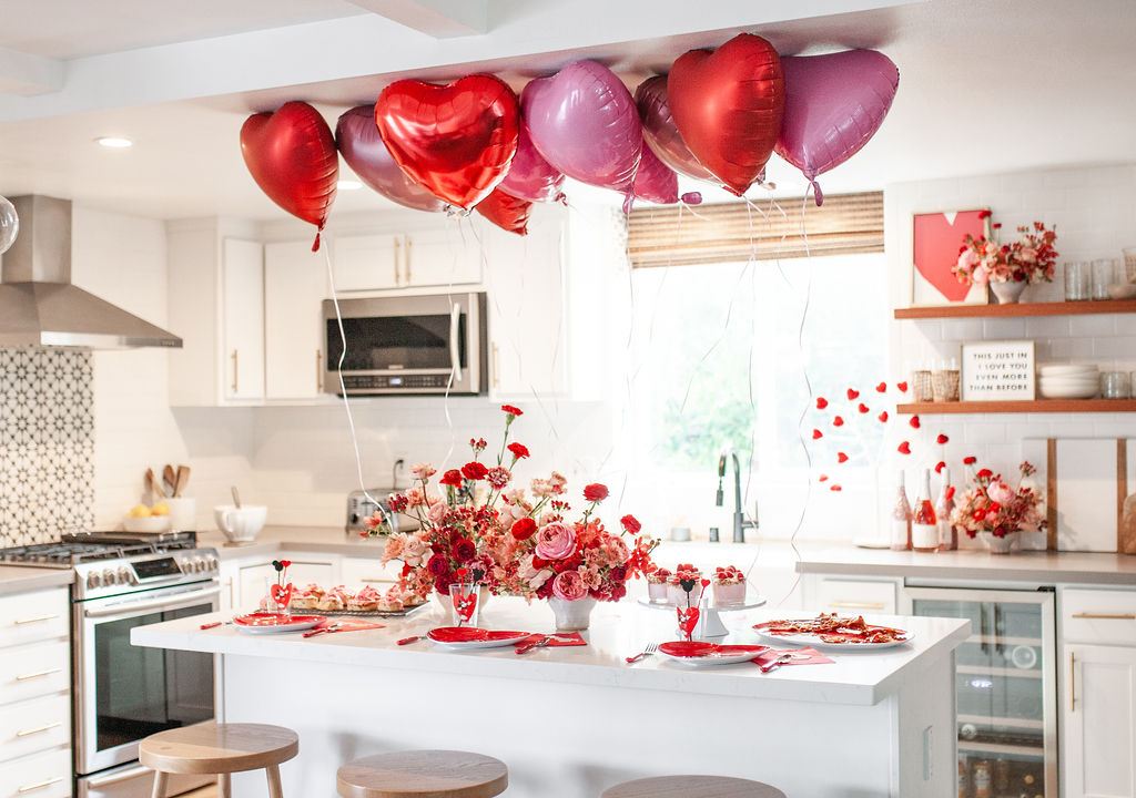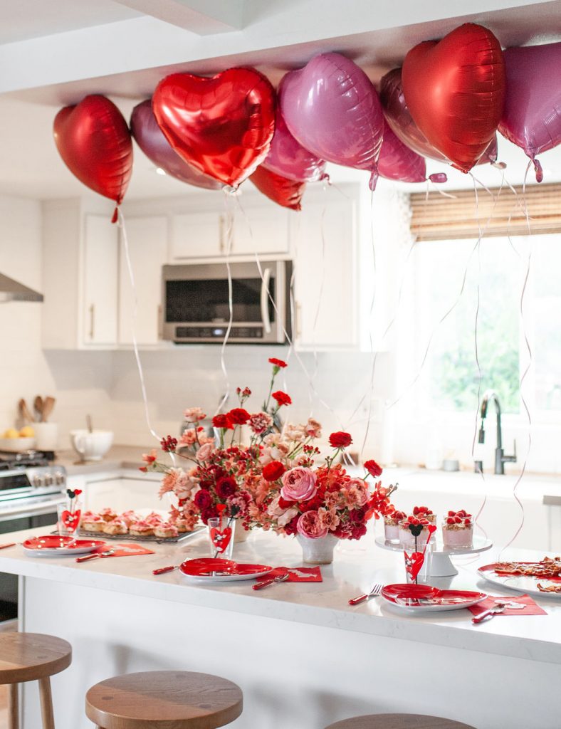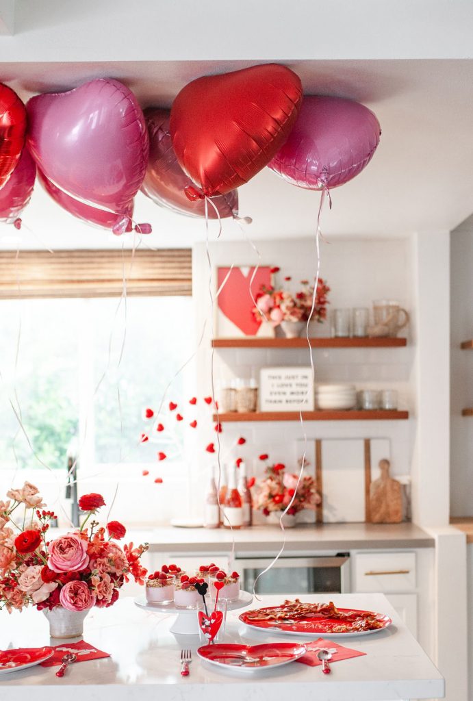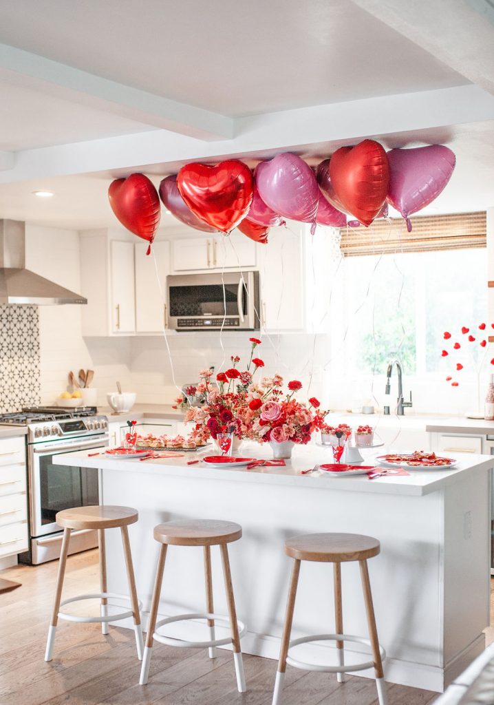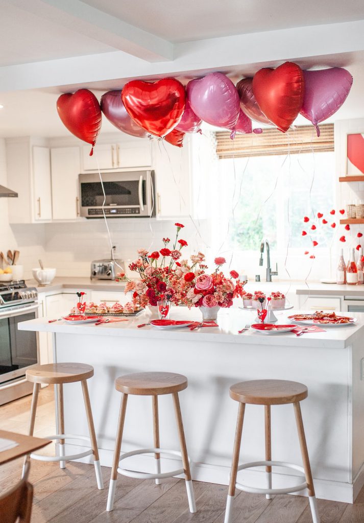 Another must have for a fun Beijos party are balloons!  For a little Valentine’s Day at home with a family of four I opted for a bunch of helium heart balloons!  These are from The Pop Shop, but you could easily take these and these to your lcoal grocery store to be filled and recreate for your own!  Easy Peasy!!  They aren’t difficult or expensive but make a big impact!