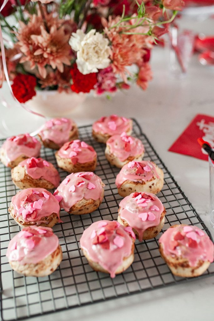 For the cinnamon rolls, I just did the easy store-bought, because that’s how I roll (pun intended!).  Then I added a little red food dye to the icing to make it pink!  I added the heart sprinkles to the top and voila!  Killing it at the mom game, haha!