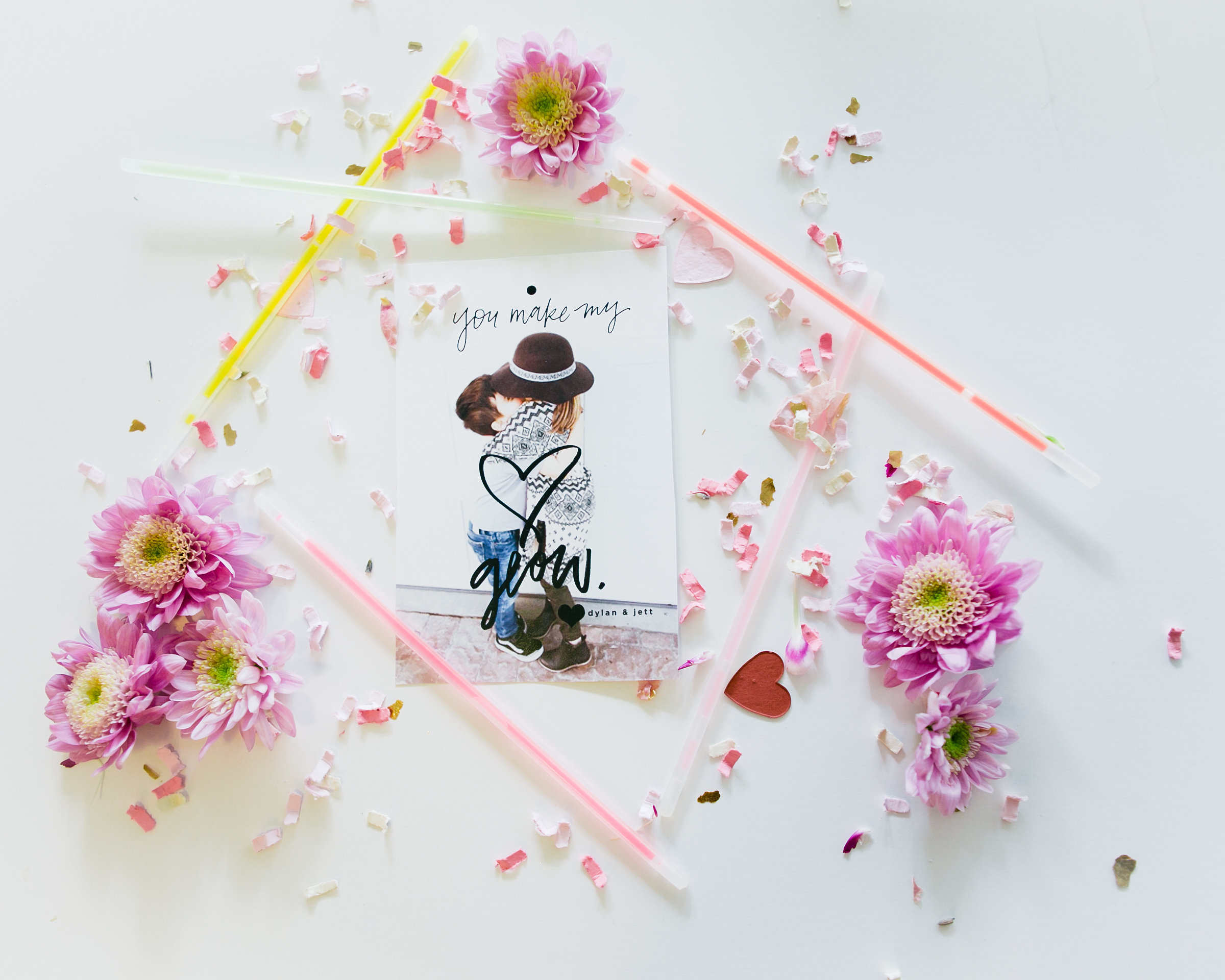 Next up is the Guido kids… Abby used this super sweet photo of Dylan & Jett having a smooch fest for her Valentine Card. Nothing like these kissing photos to show them when they’re older, or when they are fighting to remind them that they actually DO love each other! Ha! Abby used Glo-Sticks for her special treat, so fun, right?! The perfect addition to that Valentine rave your kids are headed too, haha, or for just some fun because who doesn’t love a Glo-Stick?!