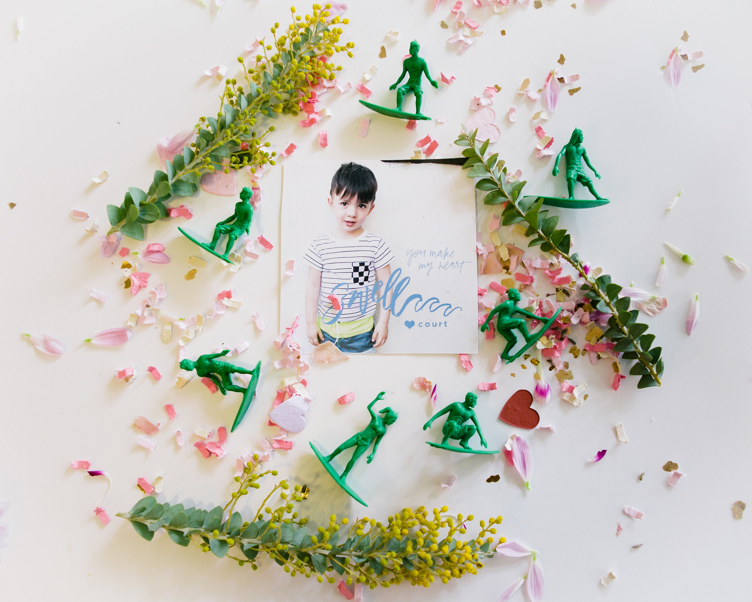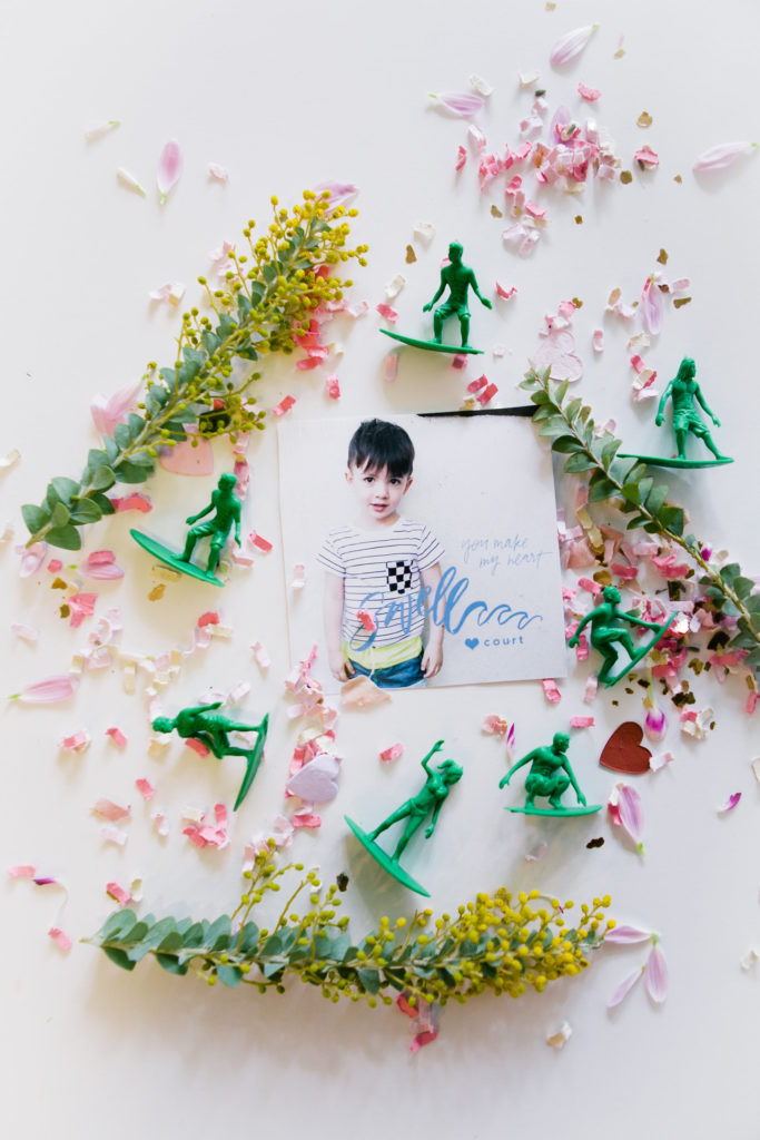 For Court’s card I wanted to do something with a beachy surf theme… Because he’s like totally a grom bro! Just kidding! But really, he loves the beach and I just thought these army surfer men & women were so amazing!! They are the perfect fun little gift and totally unexpected. I definitely think he will be unique at class and both boys and girls will love them!