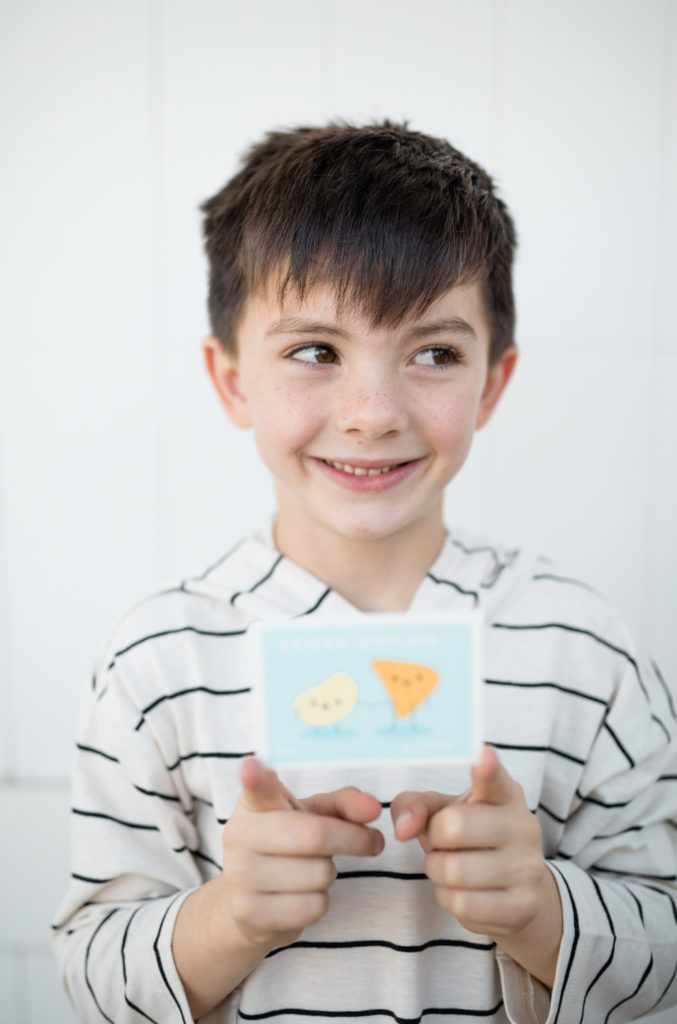 Next up, my big 5 year old kindergartner Court! I love how much he loves holidays, I don’t know where he got it from… I showed him the cards and hands down this Friend-Chip one was our favorite, we both thought it was pretty funny! He’s giving away chips of course and if I’m being honest, I’d be really into that as a Valentine treat, haha!