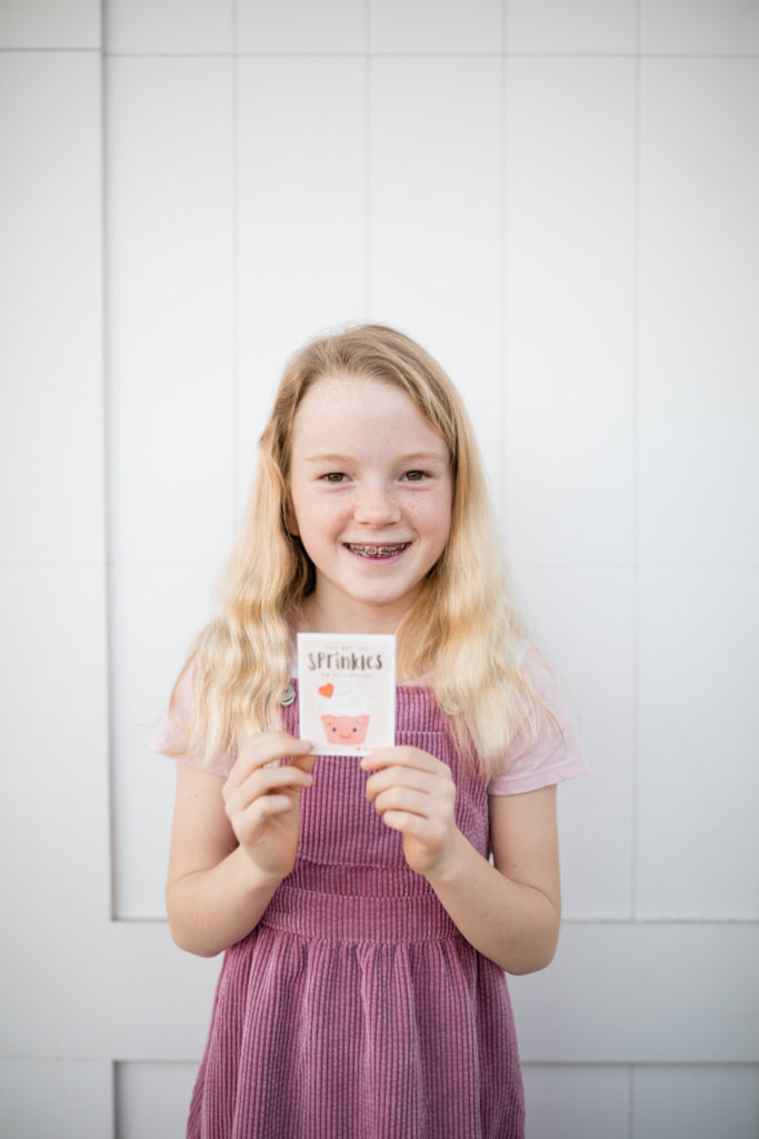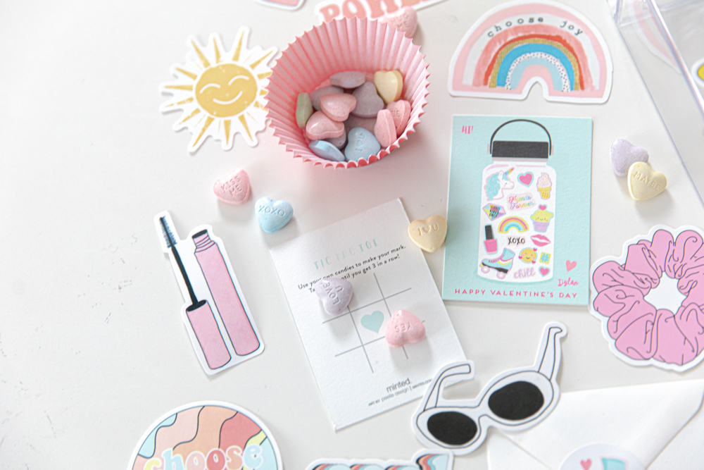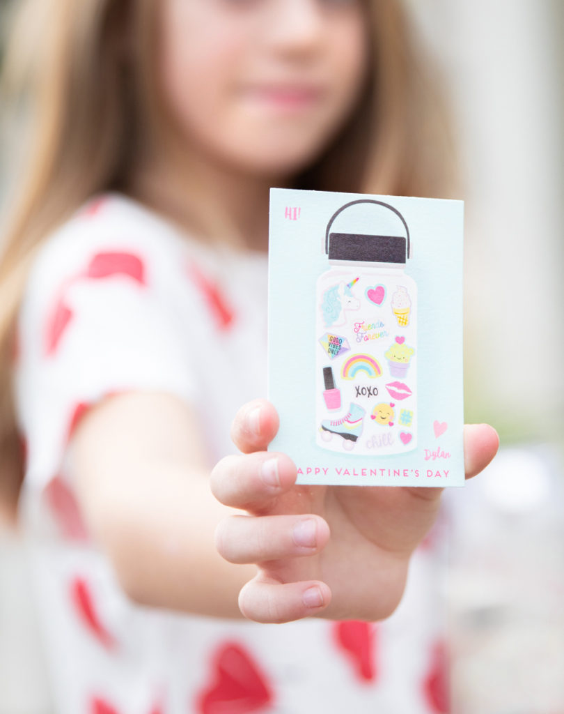 Abby’s daughter Dylan is into all the things you’d expect of an almost tween. Remember her bedroom post last summer? She’s a VSCO girl and Abby found the perfect valentine for that! How cute are these little water bottle cards?! Sooooo VSCO. Abby paired them with a clear water bottle and cool stickers. Such a fun valentine to give and receive!