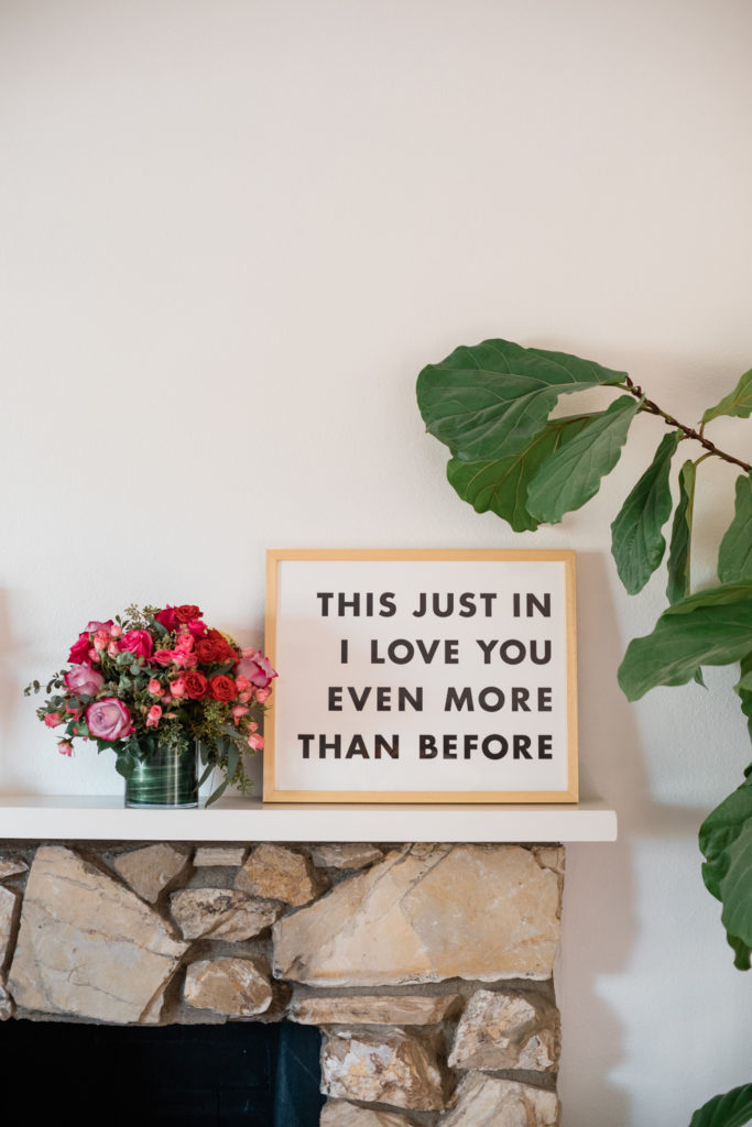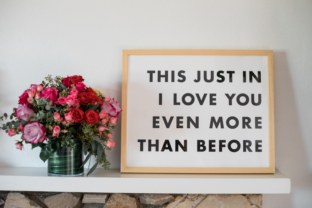 I love the simple modern feel of this print below by hi-lighter inc. and of course what it says!! It’s called the News Flash print and that is one news flash you better be sharing come February 14th!!! It’s the day to tell someone you love them, and what cuter way is there then this?! We also had some flowers delivered from Teleflora – which you can never go wrong with that either!!