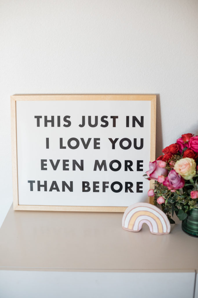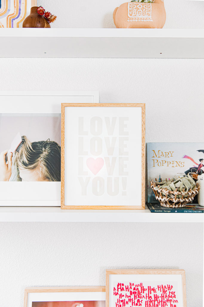 This Love Love Love You print by Max and Bunny sits perfectly in Dylan’s room on her shelves. I think it would look great there year round but is obviously so sweet for Valentine’s Day!