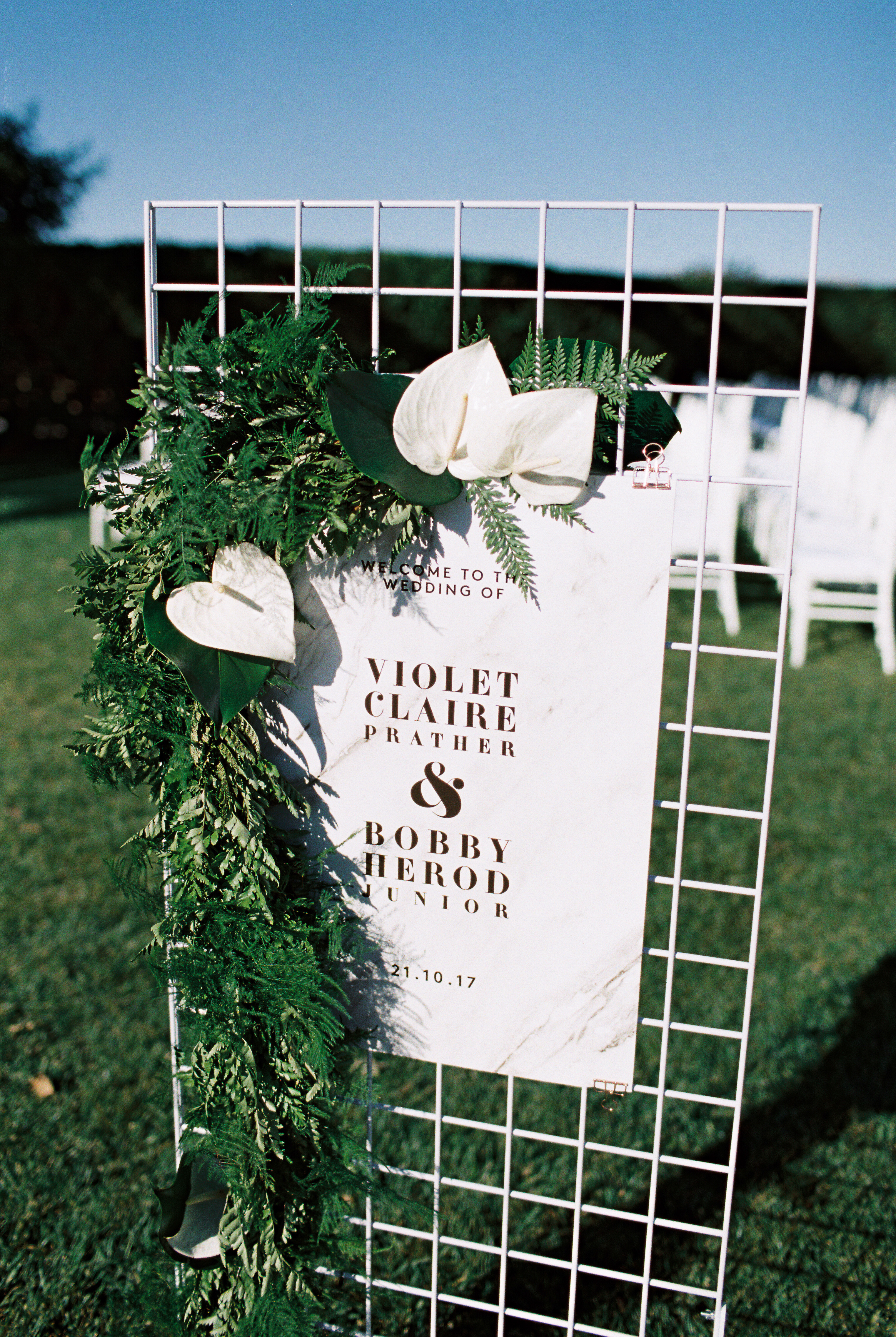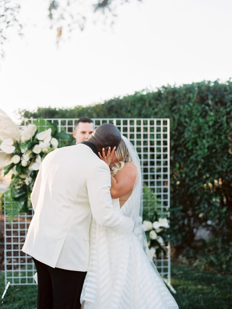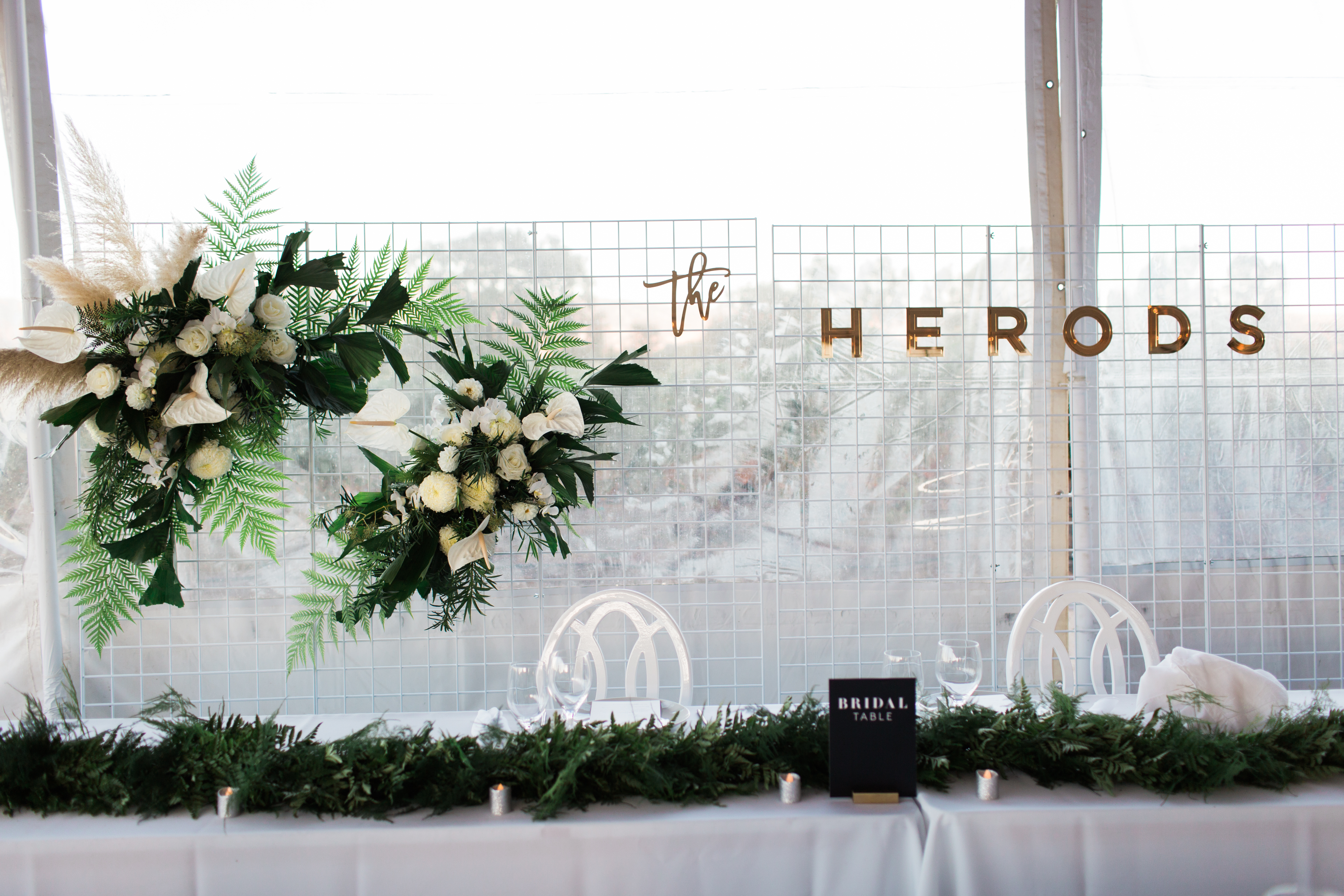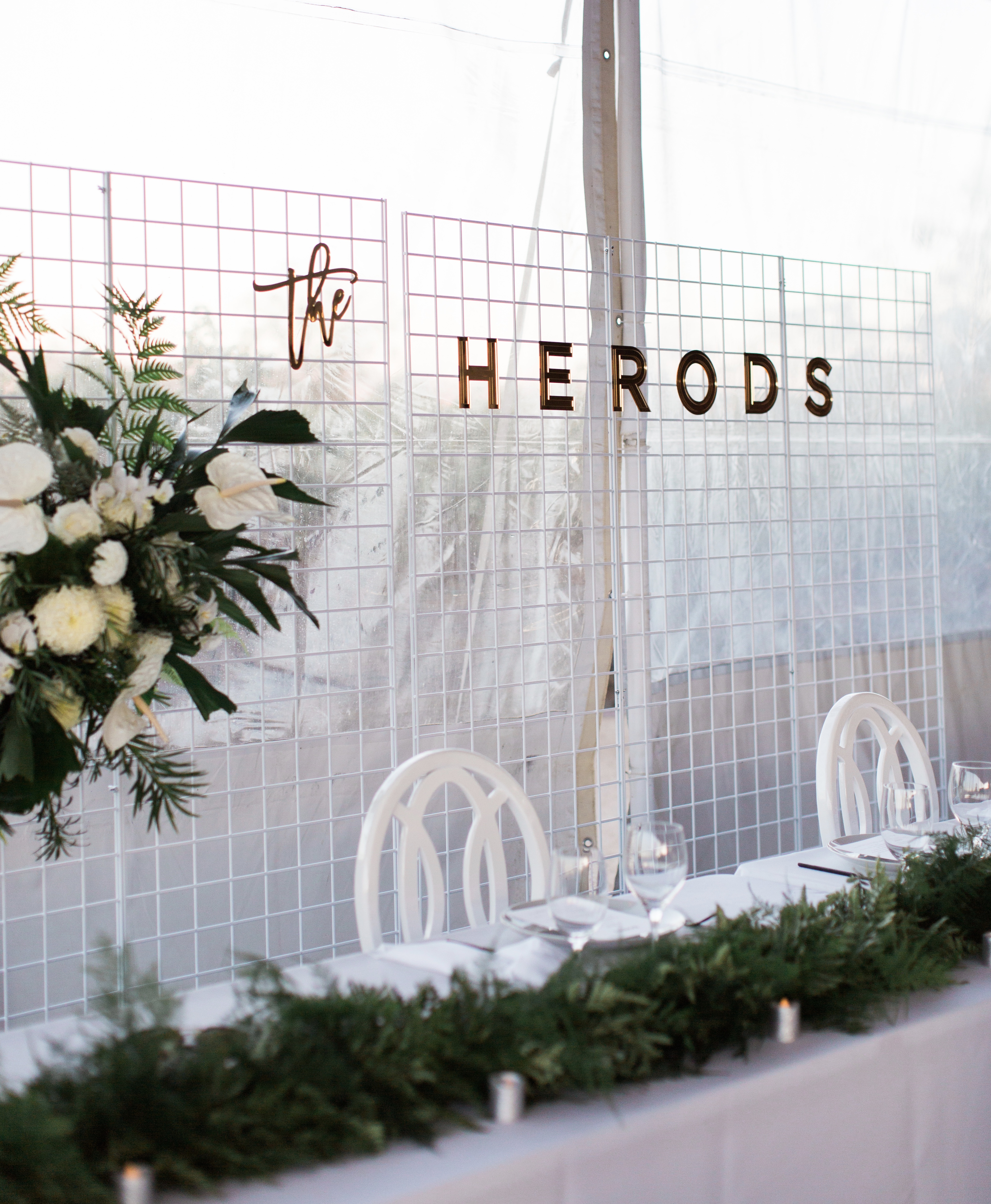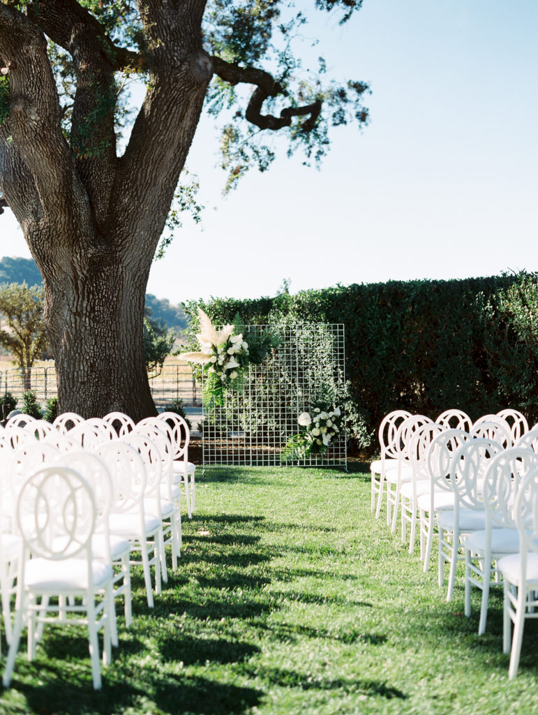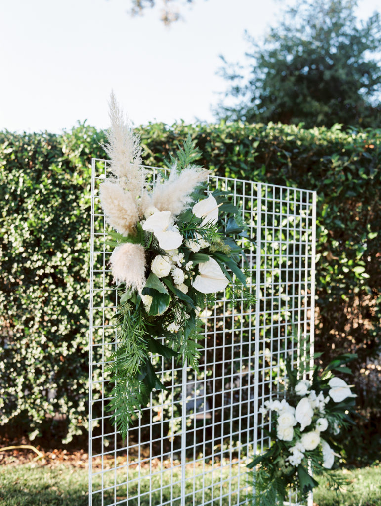 Another favorite for me was the backdrop for the ceremony. It was simple, but stunning. The white wire with beautiful florals, pampas grass and greens from Milsom & Bloom was a showstopper!