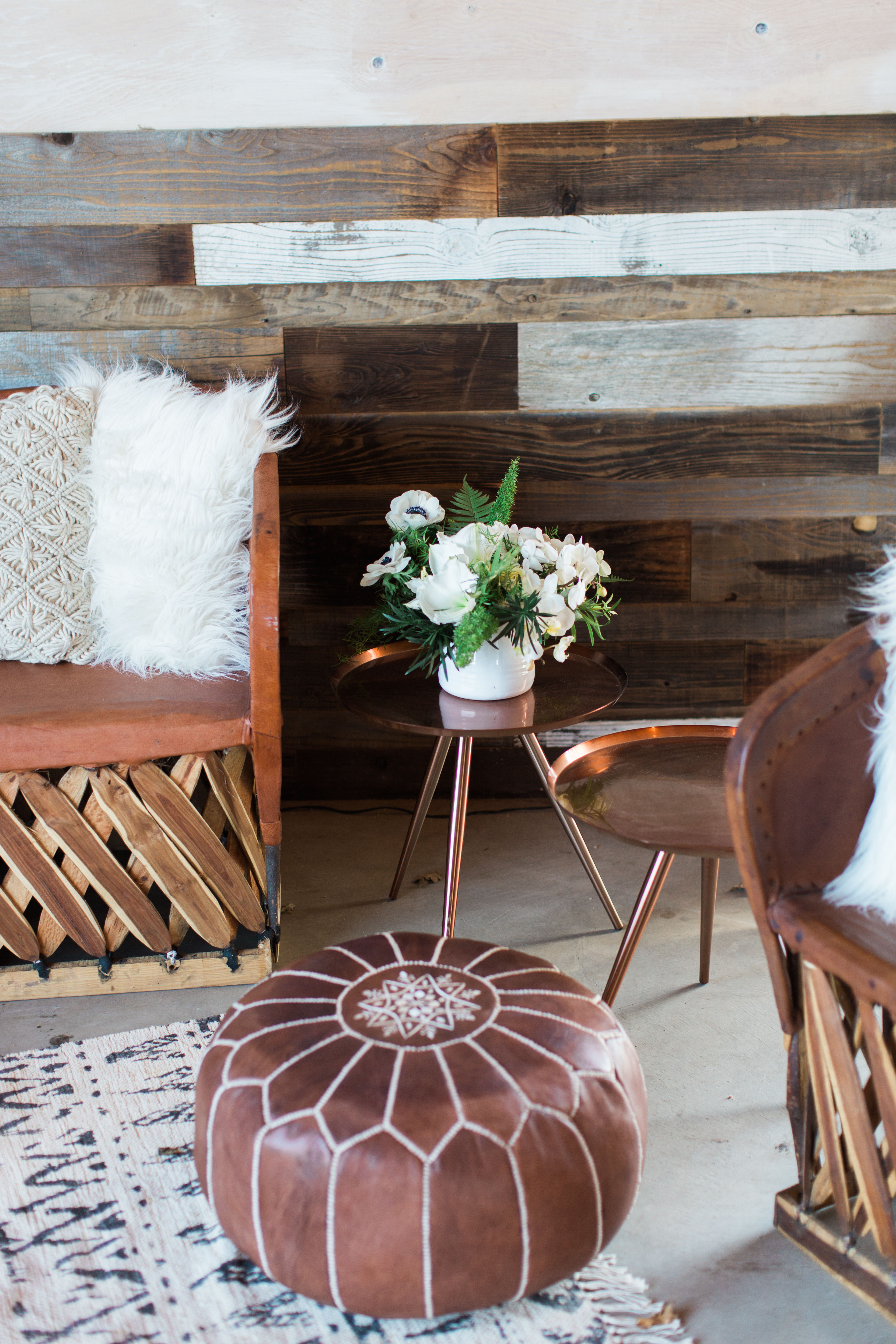 The tone for the reception was set with the boho beauty of the lounge from Lost and Found Vintage Rentals. We used a a few other of their pieces to add some character to the space as well. Their inventory was really fun to play with and was such a great addition to the wedding!