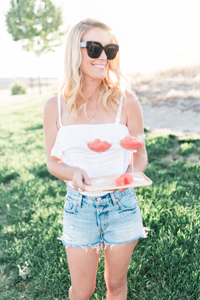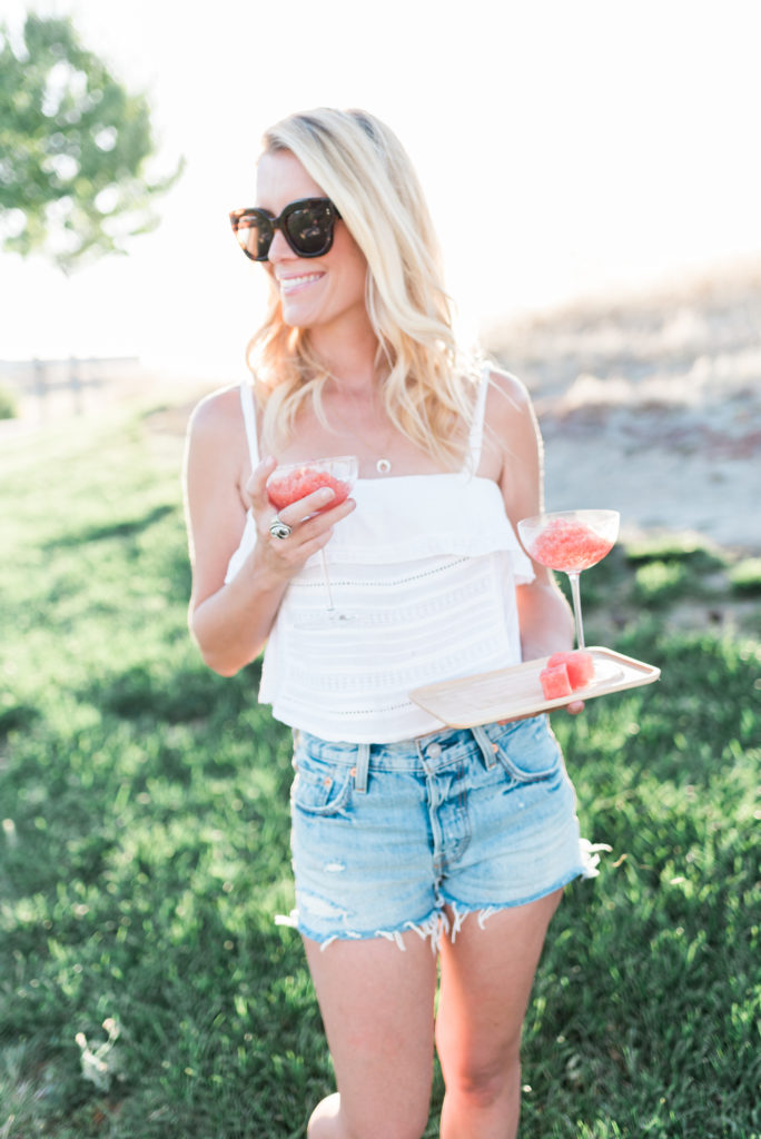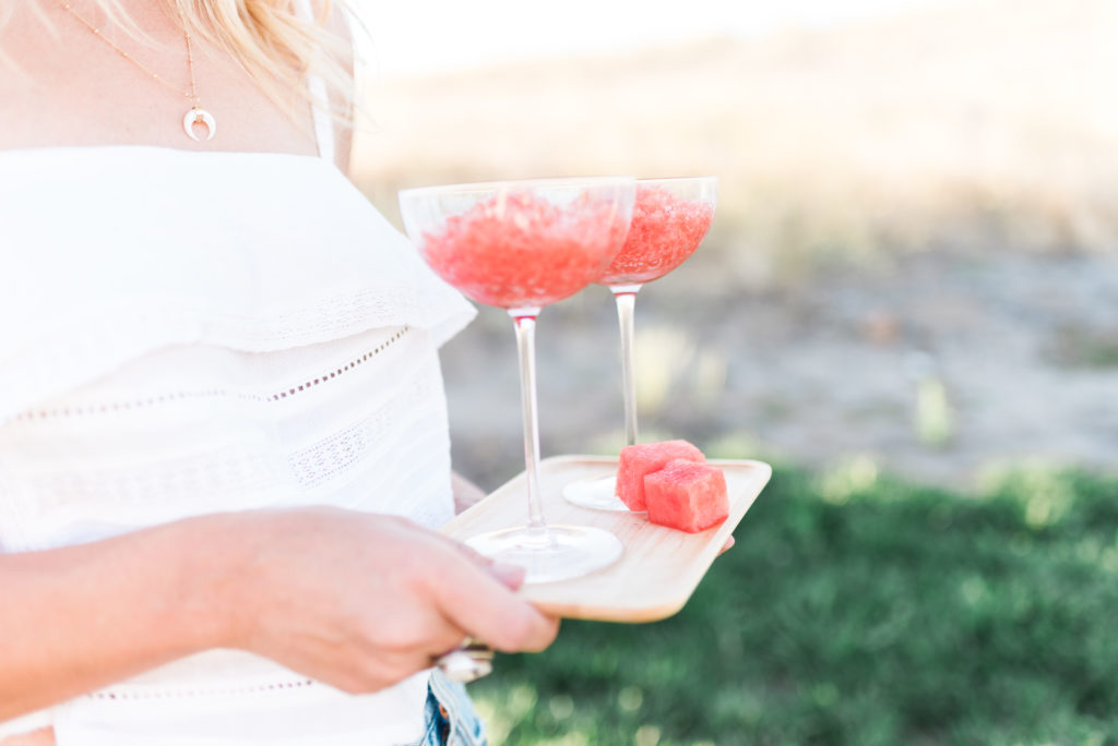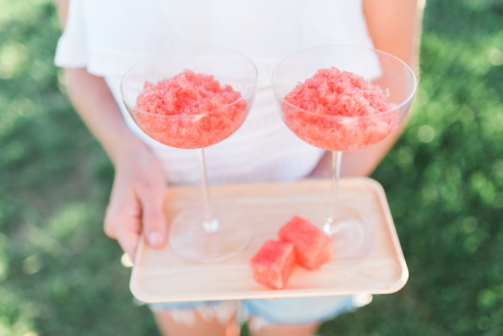 With all this pretty blush and rosé going on this week, we had to end the week with a sweet treat. Meet the watermelon frosé slushy. The best adult shaved ice drink you will ever have! Growing up, every year we went on vacation to Oregon, I always got shaved ice as my dessert. Watermelon was always my choice of syrup. So when I saw a recipe for a watermelon frosé, I had to try it! This sweet little drink will have you loving rosé in a new way!