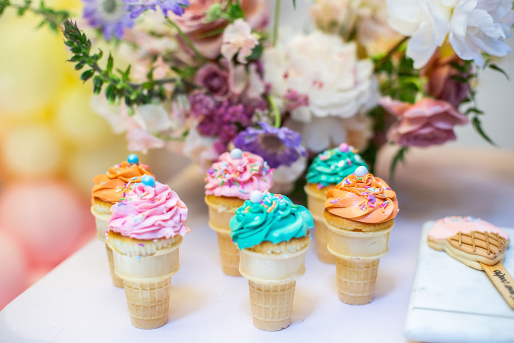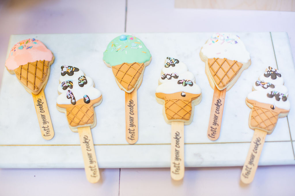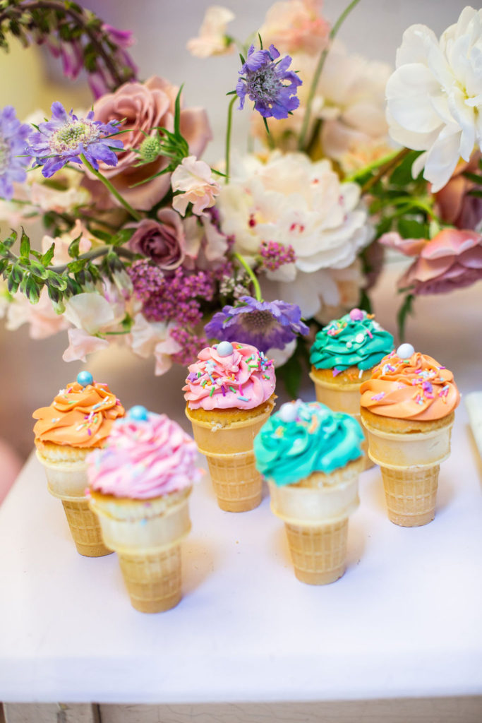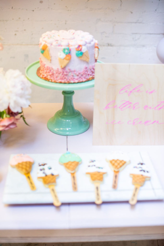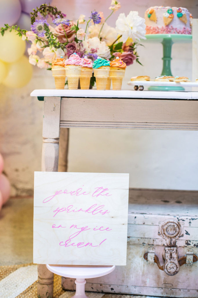 Gotta have desserts of course!! Frost Your Cookie did it again with the most adorable dessert set up. We had to have her signature cookies which you saw earlier but she also added the cutest cake and the yummiest cupcake cones! Aren’t those so nostalgic? Reminds me of parties when I was a kid, but MUCH cuter.