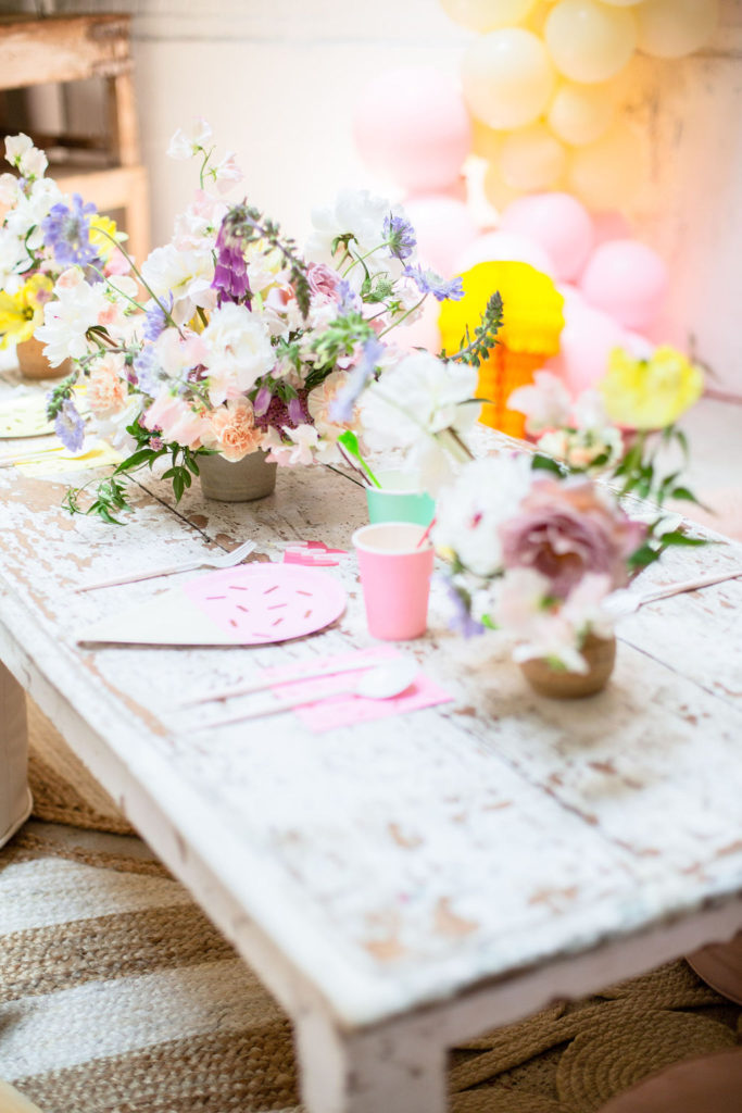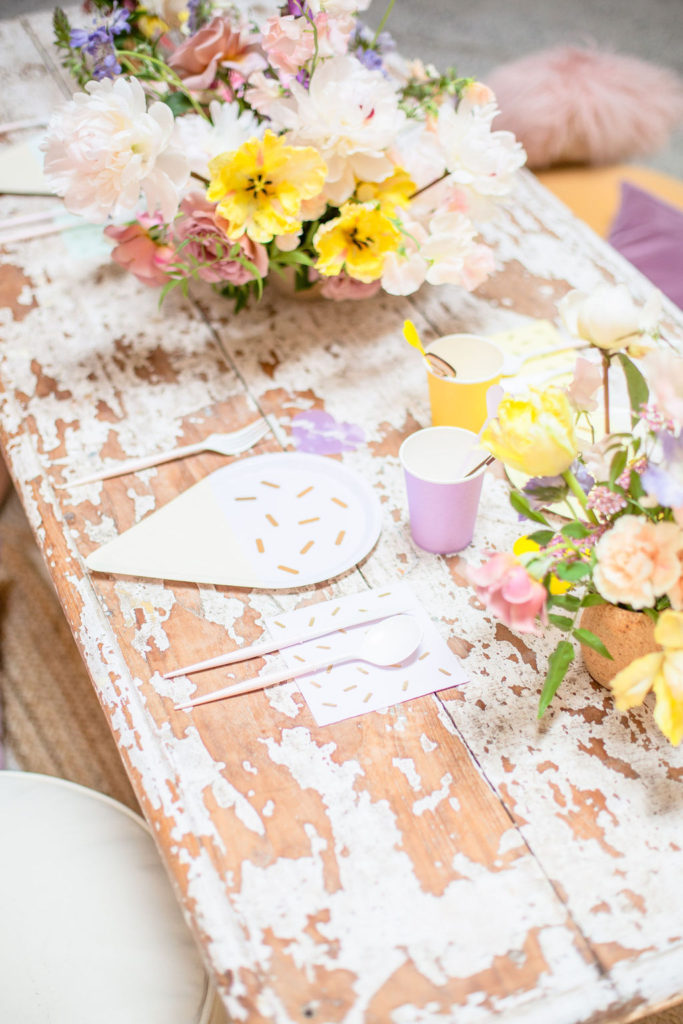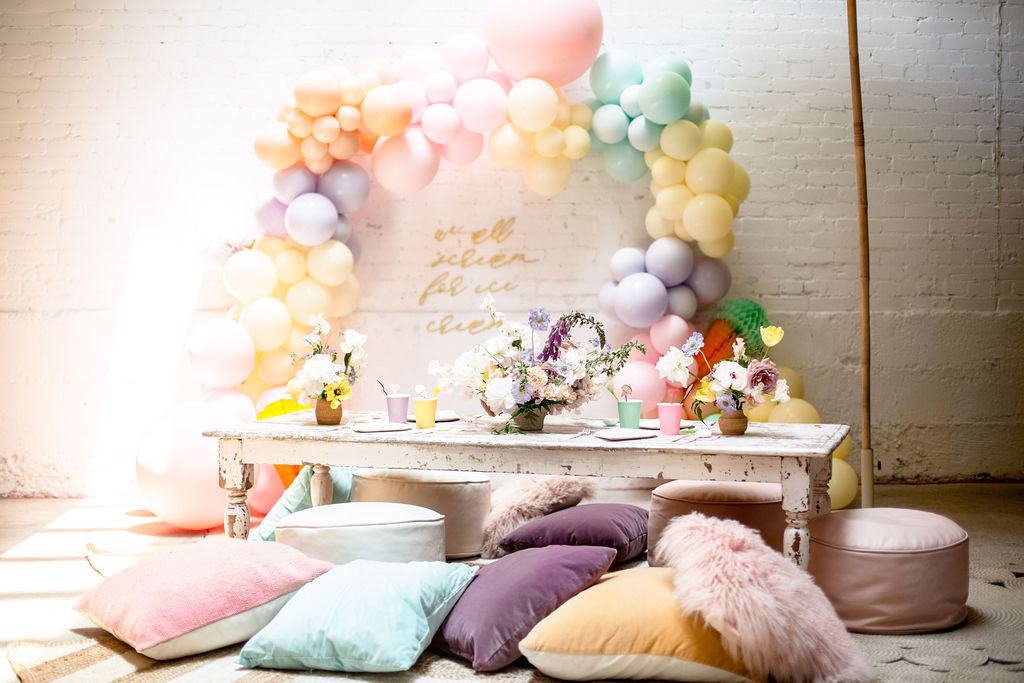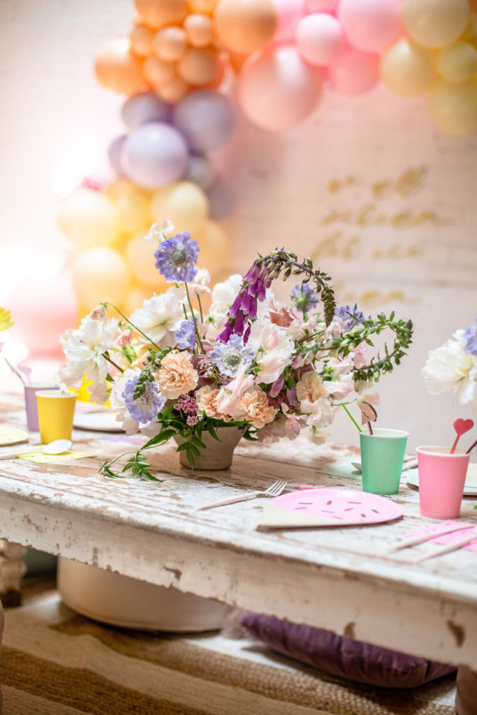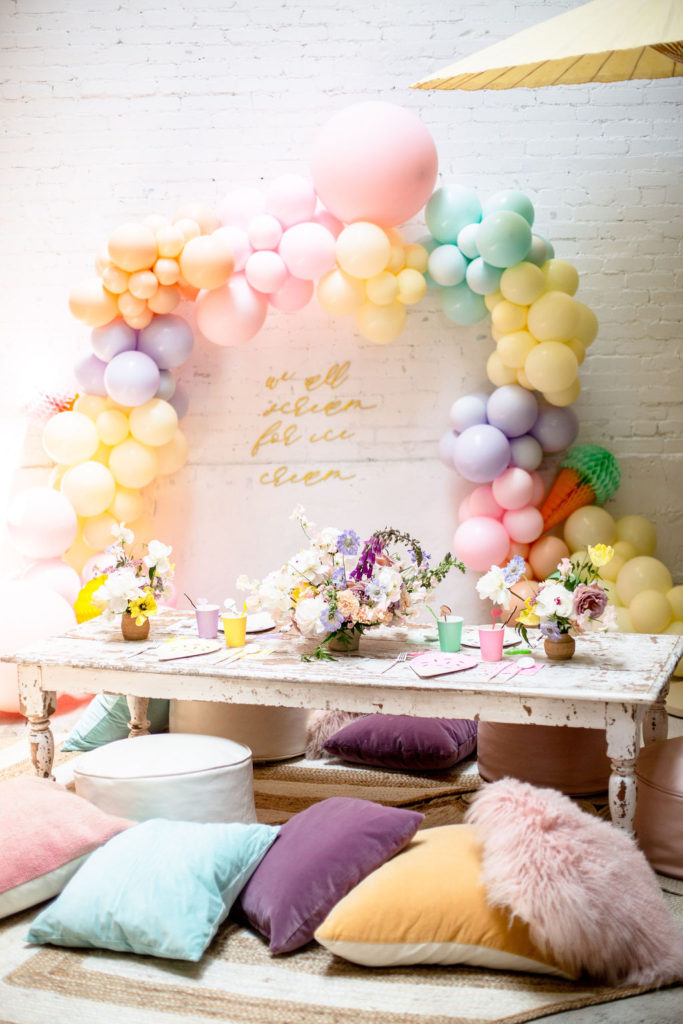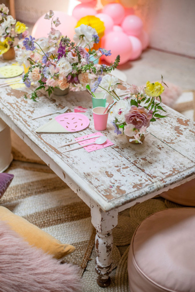 The low table set up is one of my favorite for a kid’s party and Sweet Salvage Rentals has so many options. I especially love her amazing pillow collection that we layered on the floor. The colors are perfect!