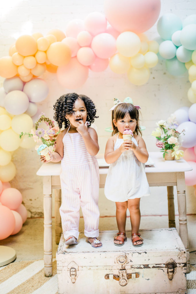 When planning this cute shoot I went with soft pastel colors and it ended up so darn sweet. Not only did we have adorable decor but adorable little girls too! Keep scrolling to see all the photos from Mindy Tanimoto Photography.