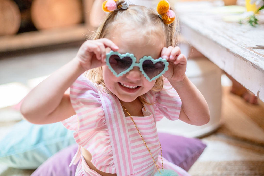 All of the girls are wearing accessories from The Daydream Republic. She just has such fun stuff! From hair accessories to sunglasses and even the fuzziest little ice cream necklace!