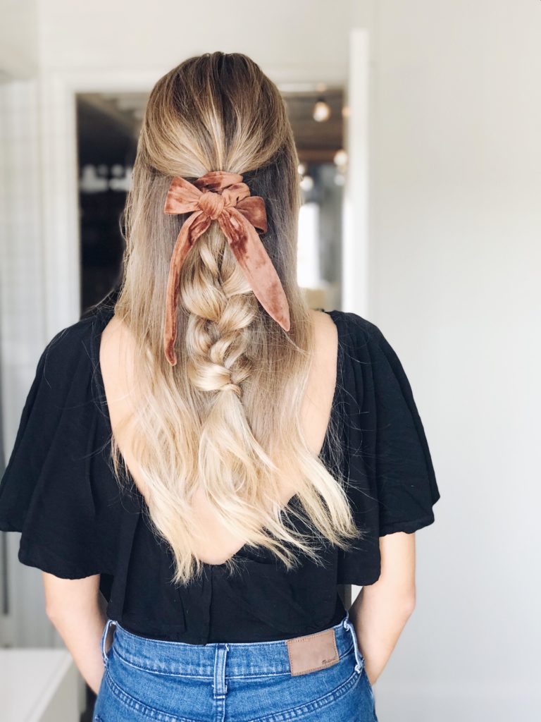 5 Minute Hair – Easy Braided Ponytail Half Updo with Scrunchie